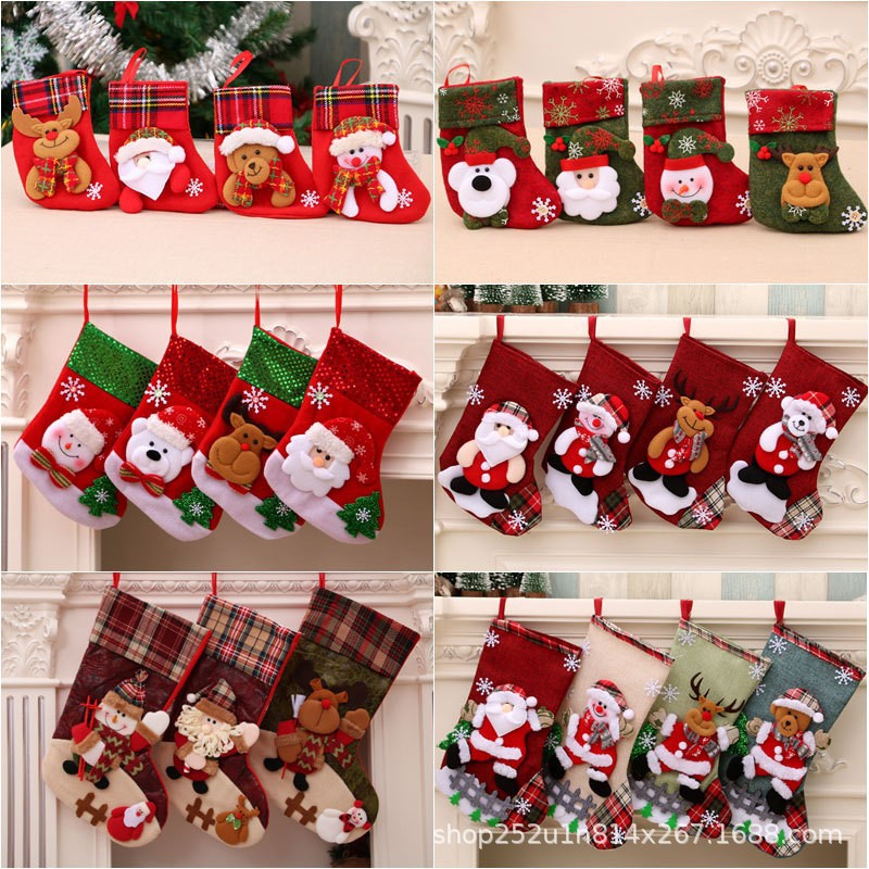 跨境新品圣诞袜 圣诞节装饰品 圣诞礼物袋 复古毛绒圣诞袜礼品袋