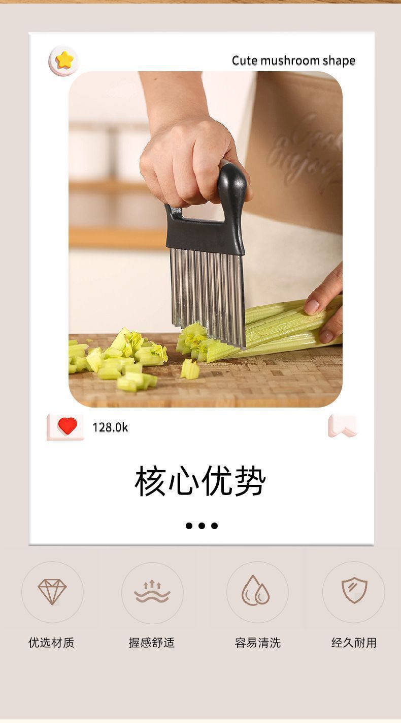 新加深纹波浪刀家用304不锈钢狼牙土豆刀切菜花式波纹切菜器家用