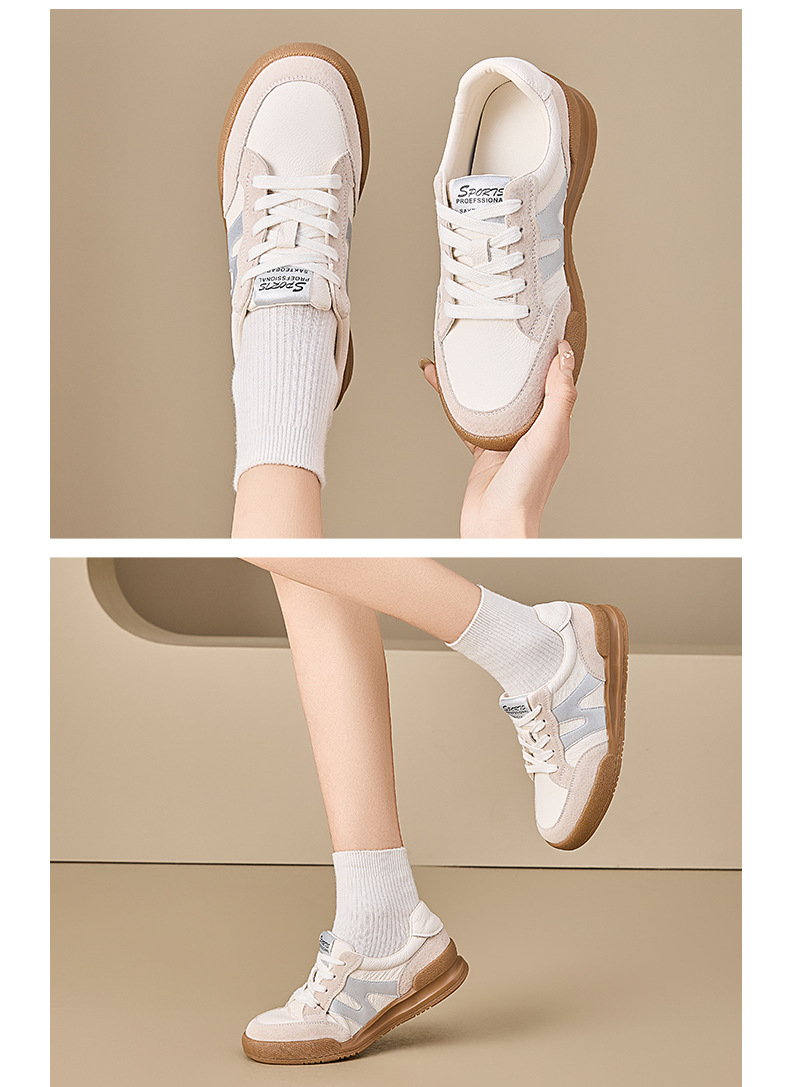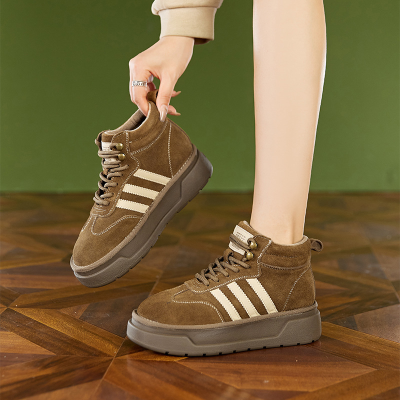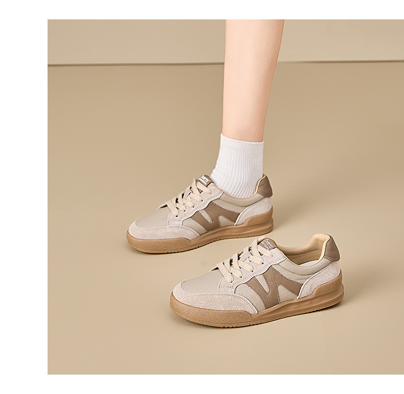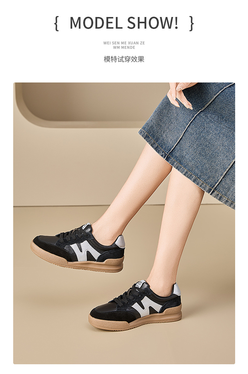 2025秋季新品真皮德训鞋女韩版厚底系带阿甘鞋厚底软底加绒休闲鞋