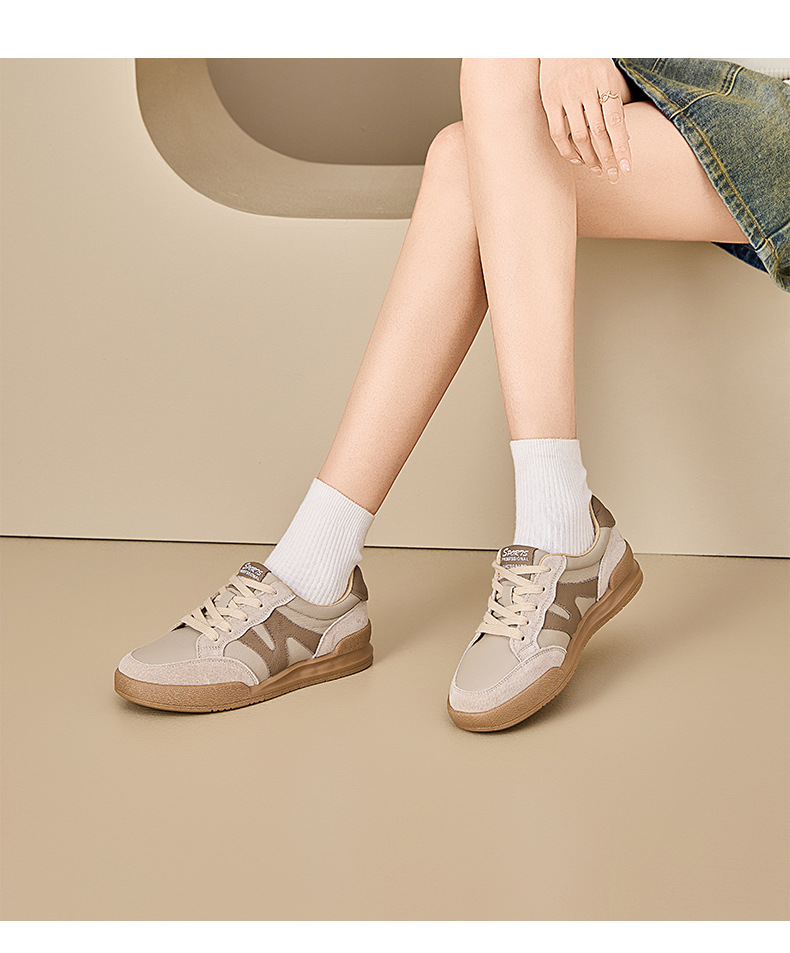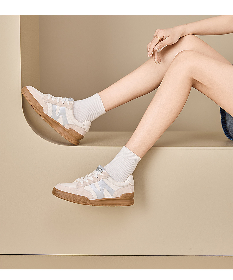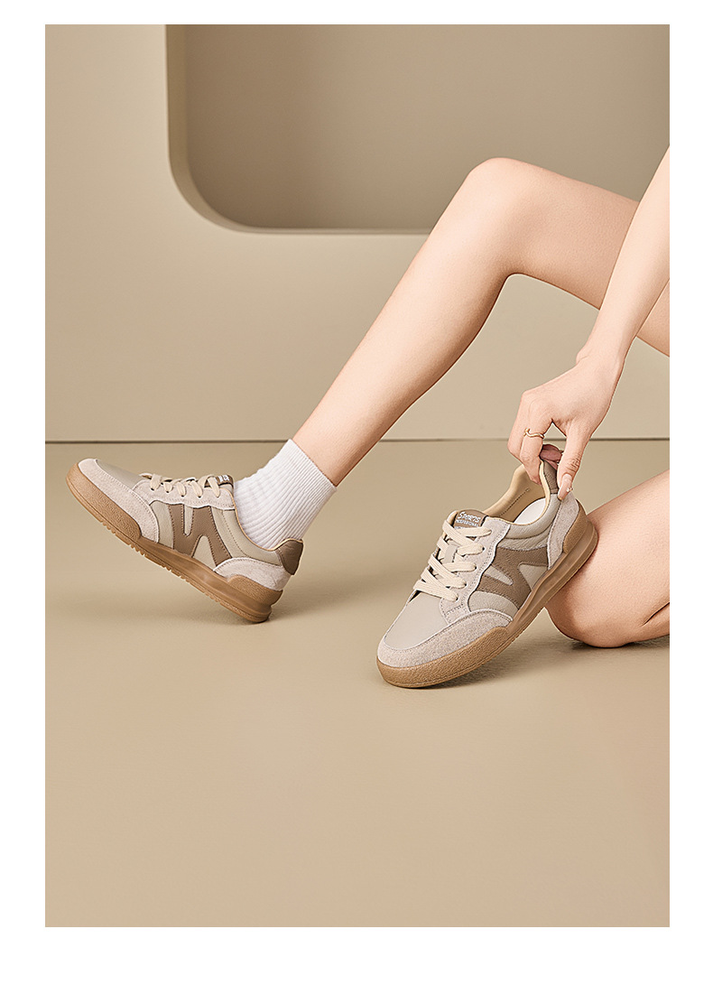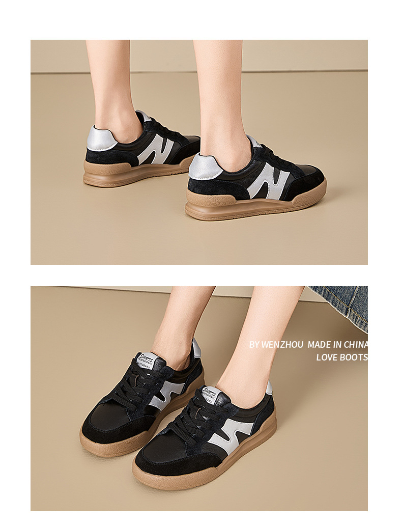 2025秋季新品真皮德训鞋女韩版厚底系带阿甘鞋厚底软底加绒休闲鞋