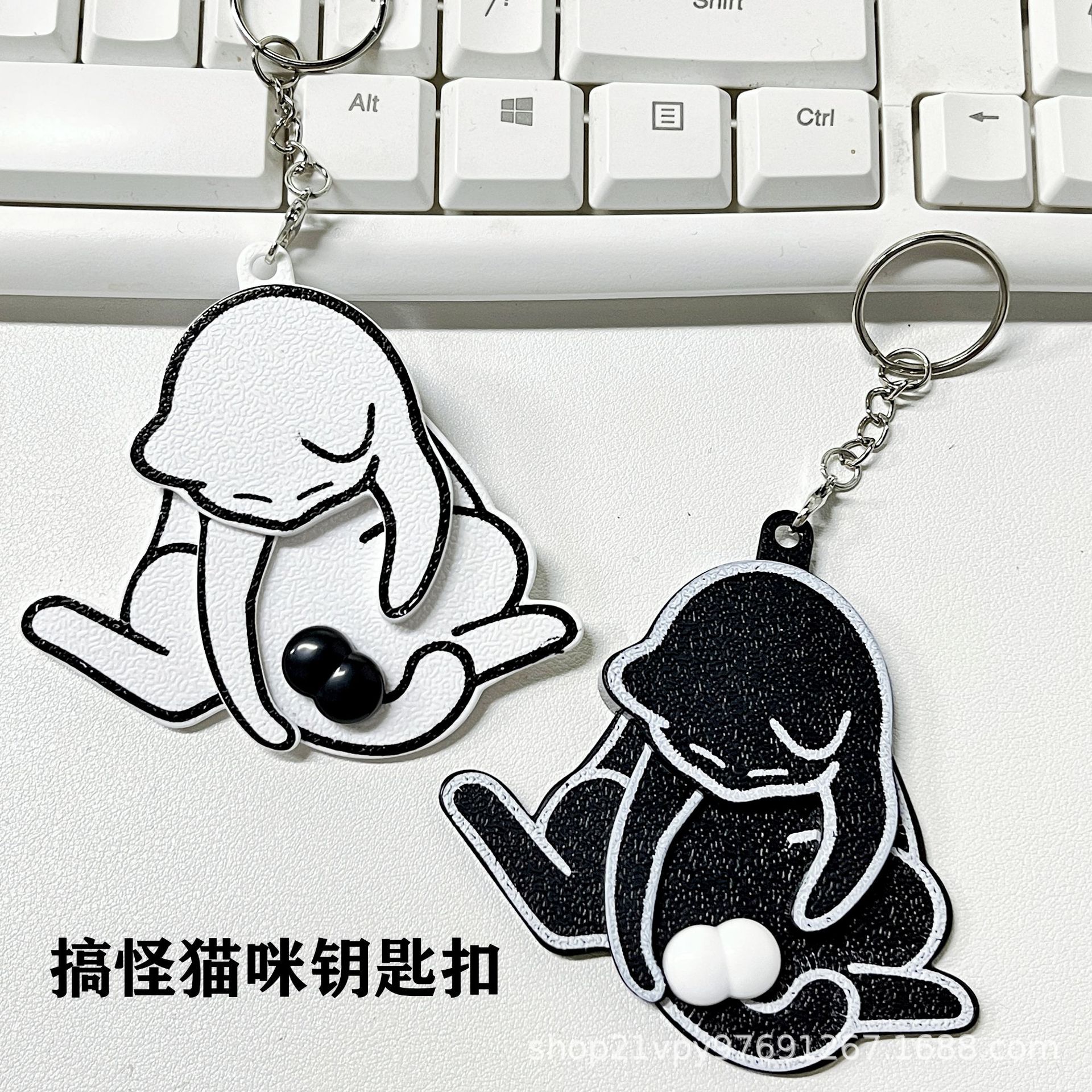 爆款跨境创意搞怪捣玩蛋猫可旋转钥匙扣书包挂件手办礼品玩具