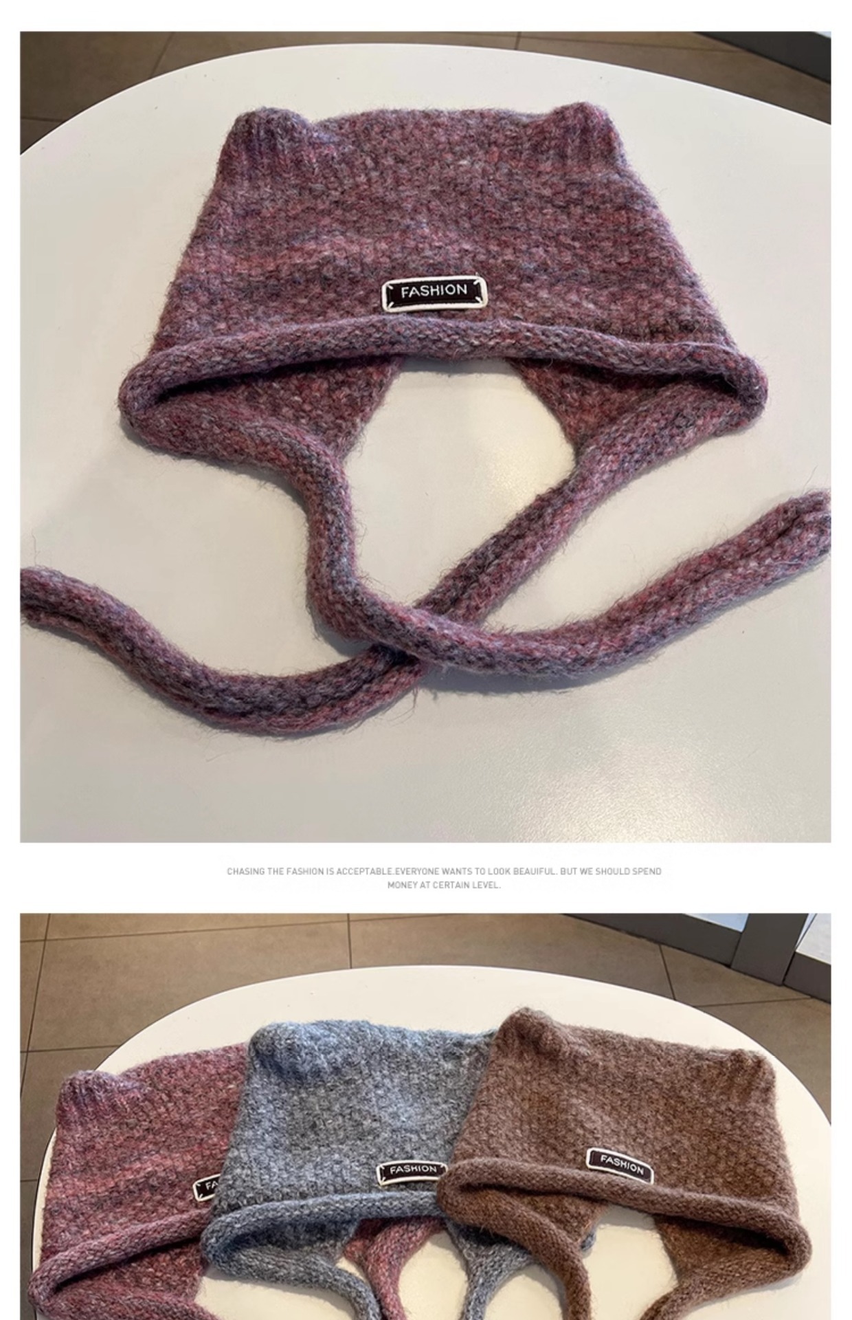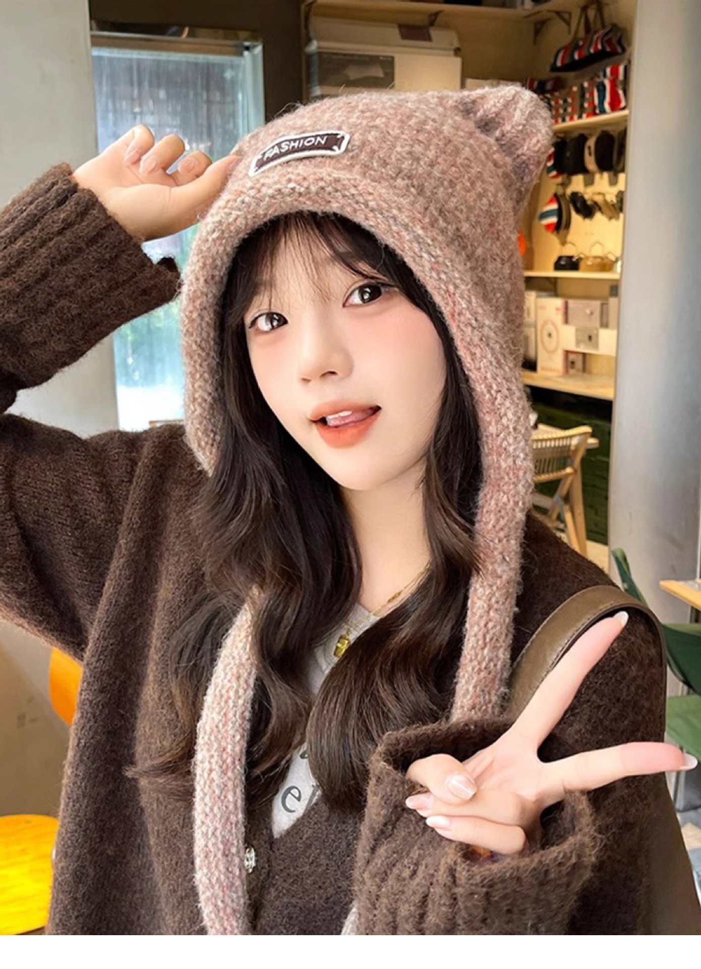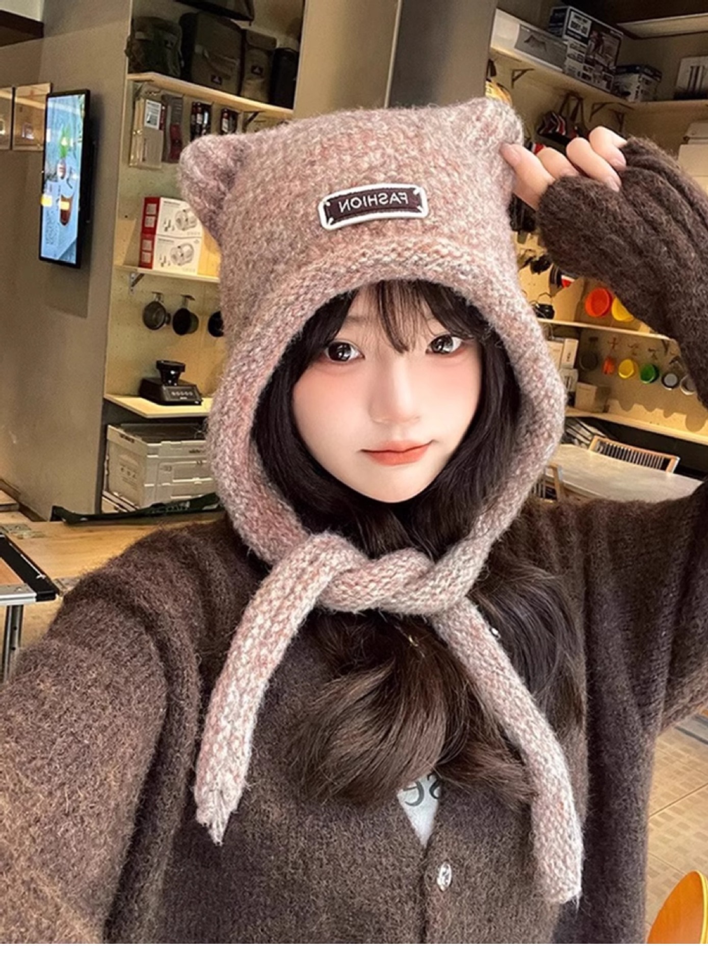 ファッション新型女子冬風雪帽保温ママ耳保護包頭ニット帽マフラー一体毛糸帽