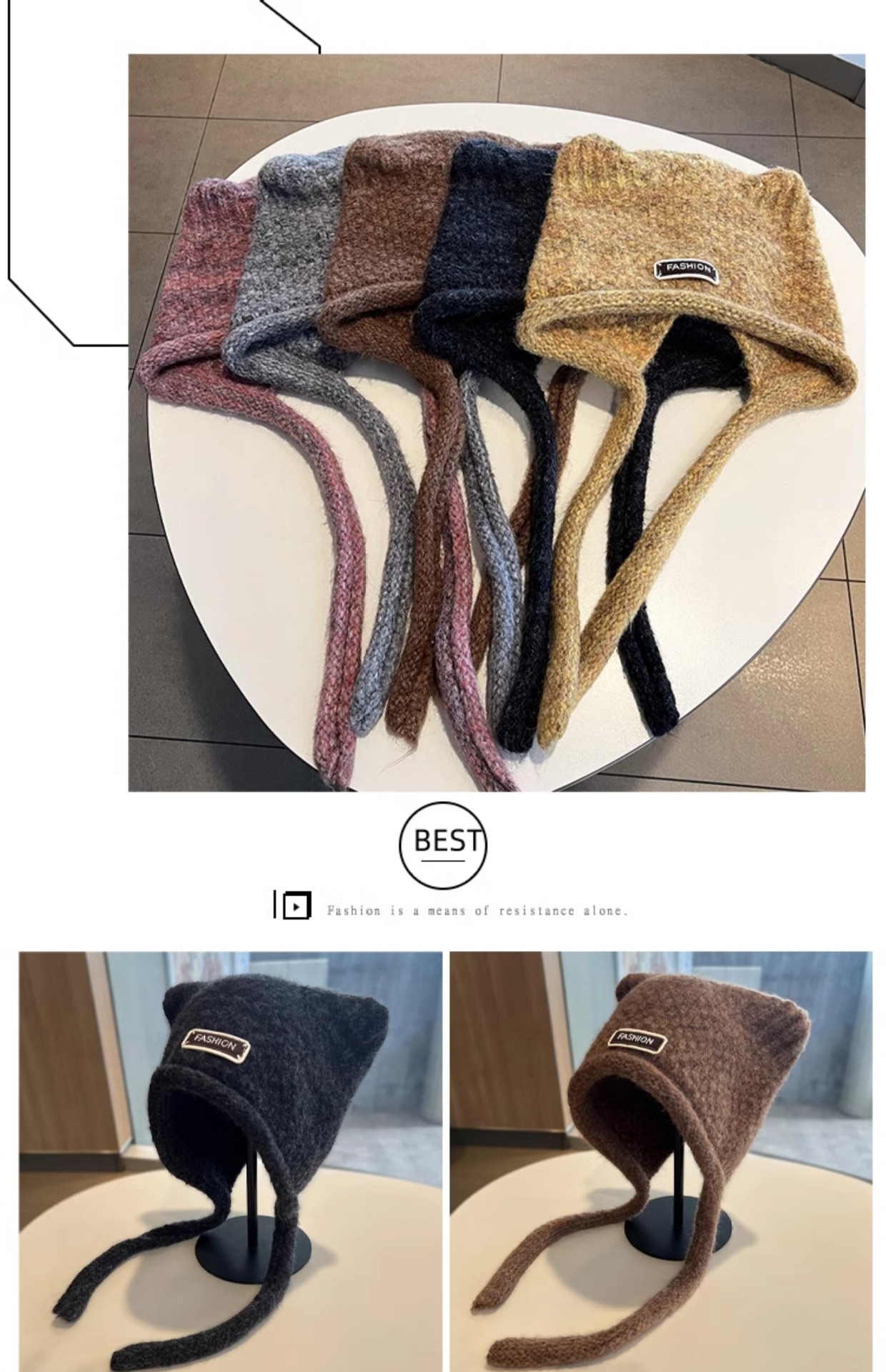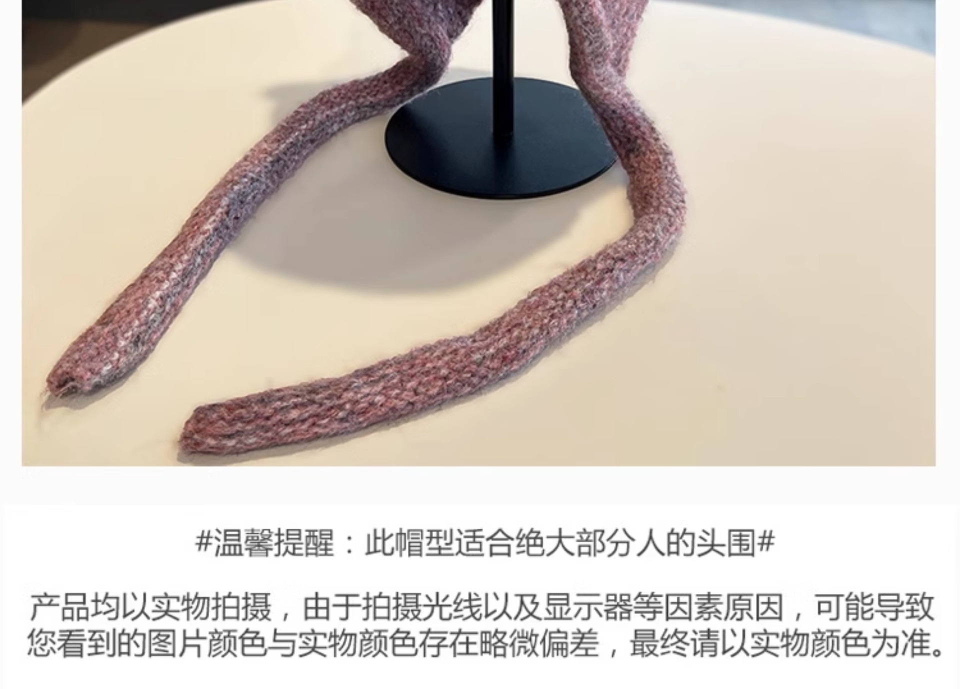 可爱小羊耳朵毛绒针织帽子女秋冬韩版毛线帽保暖护耳显脸小帽子女