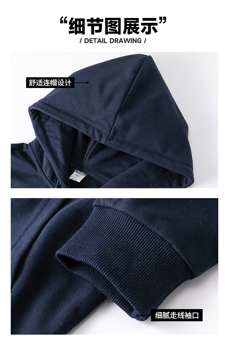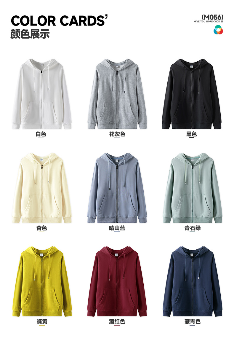 货号 M056 落肩毛圈拉链连帽口袋卫衣