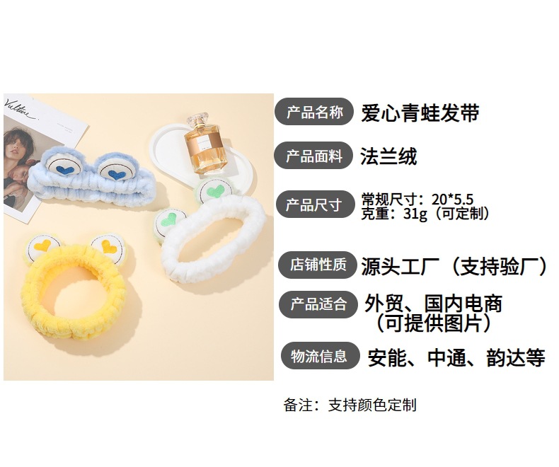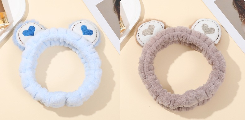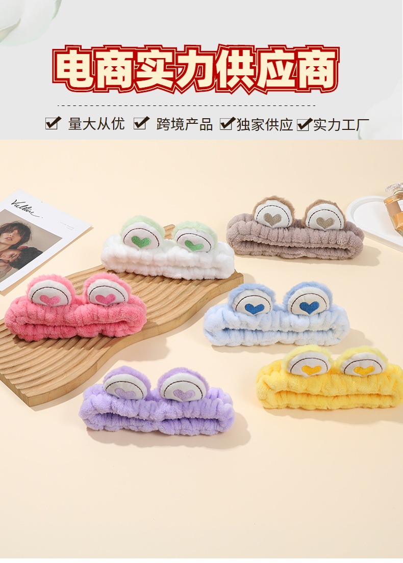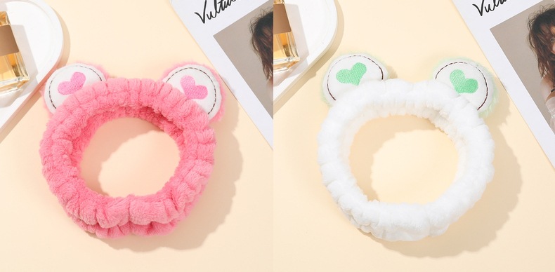 秋冬日韩新款青蛙大眼睛洗脸发带可爱卡通发箍女面膜毛绒爱心头箍