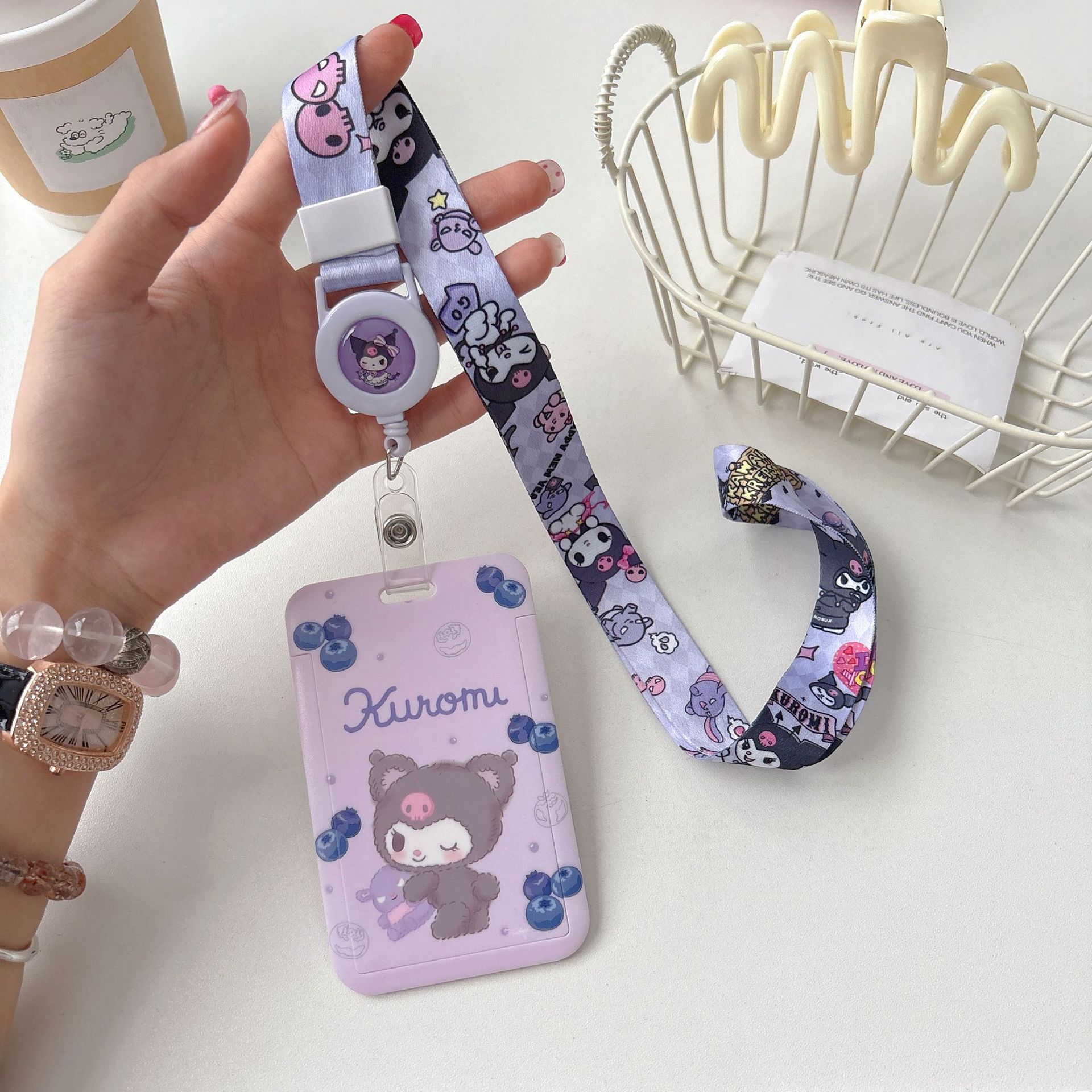 曲線の辺のsanrio家族の長い縄の胸のカードのカバーの証明書のカードの地下鉄のバスのカードのドアの禁止カードの学生のかばんは掛けます