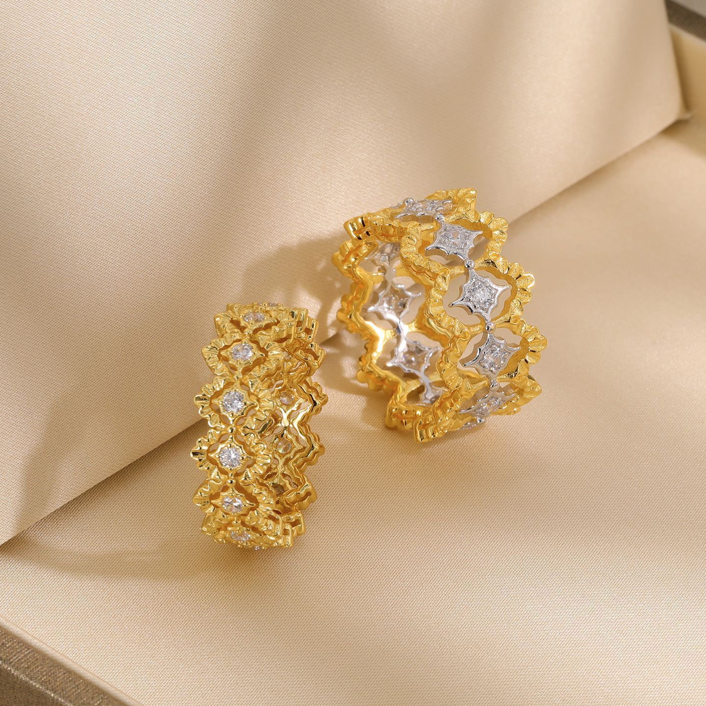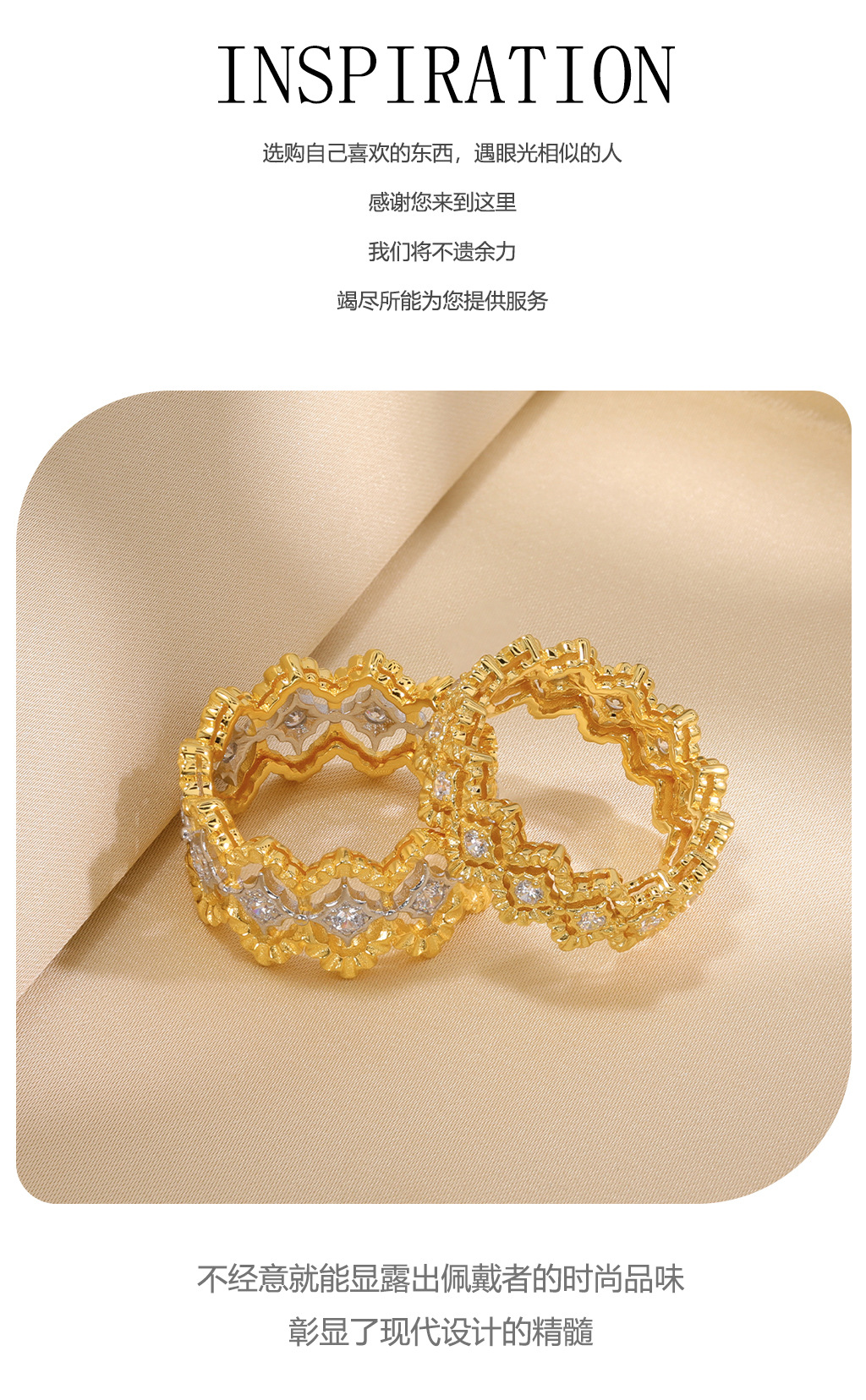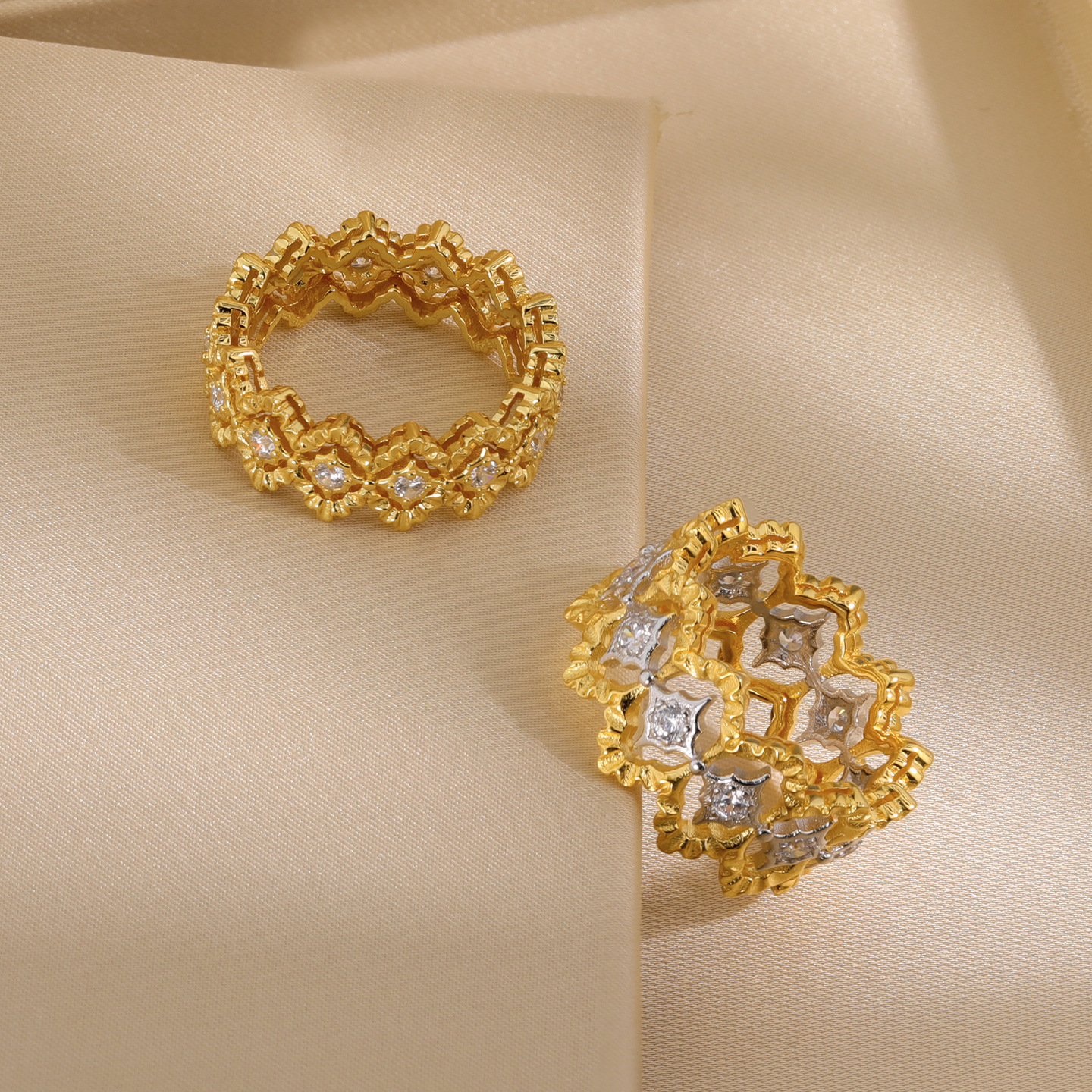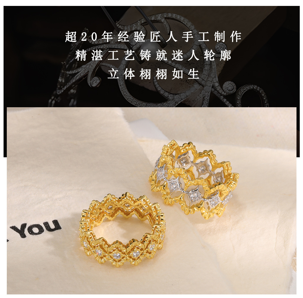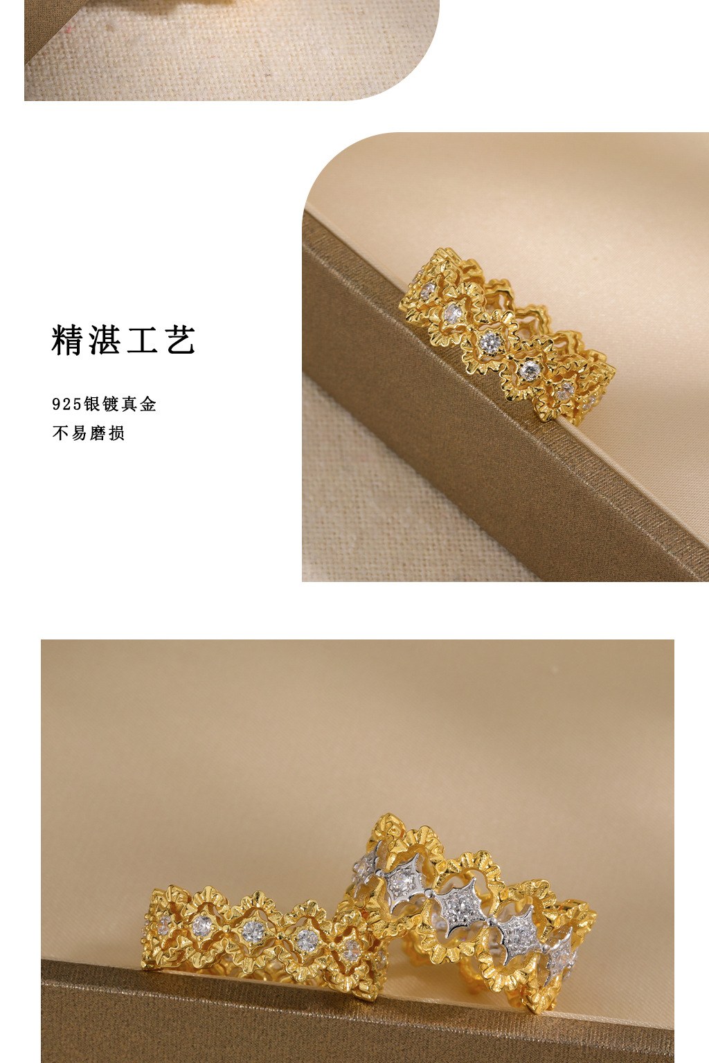 小红书爆款重工布家蕾丝戒指新款意大利s925纯银镀金菱格镂空指环