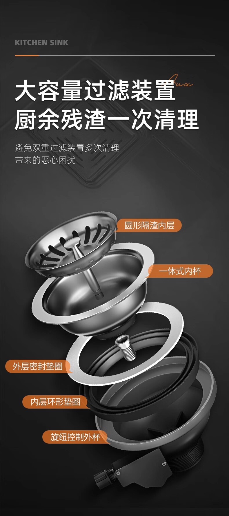 新款集渣水槽大单槽加厚SUS304不锈钢家用厨房洗菜盆洗手洗碗水池