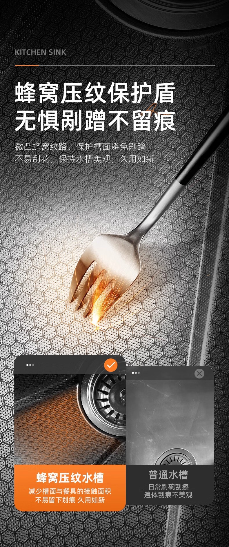 新款厨房水槽大单槽蜂窝压纹家用加厚纳米SUS304不锈钢洗菜盆洗碗