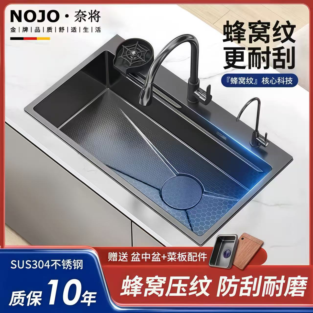 NOJO洗菜盆大单槽加厚304不锈钢厨房水槽鲸鱼飞雨水池台下洗碗槽