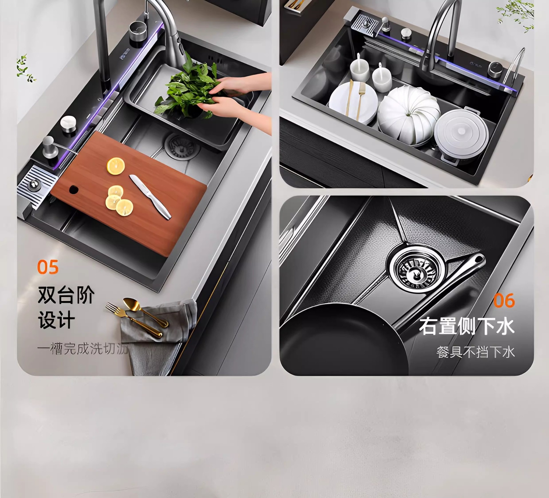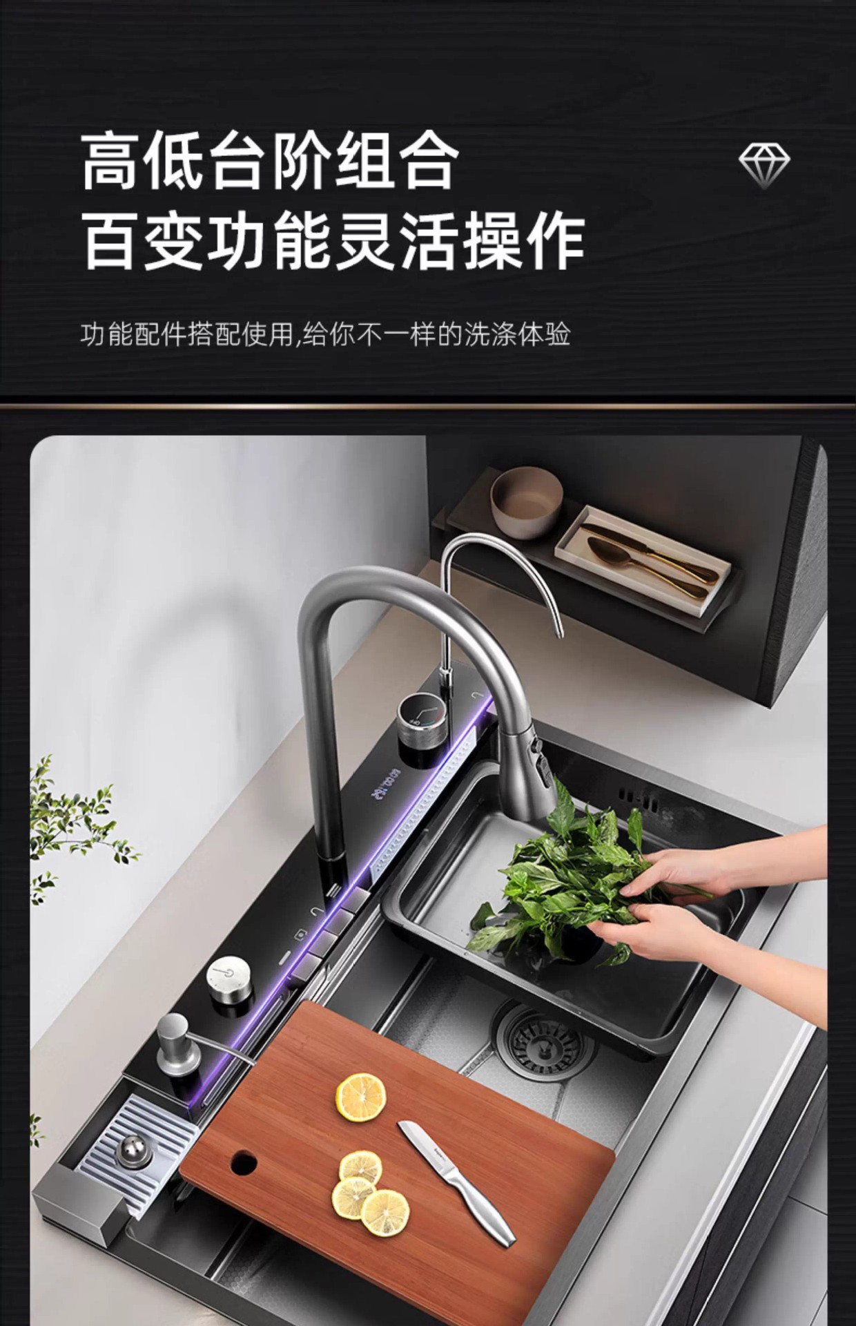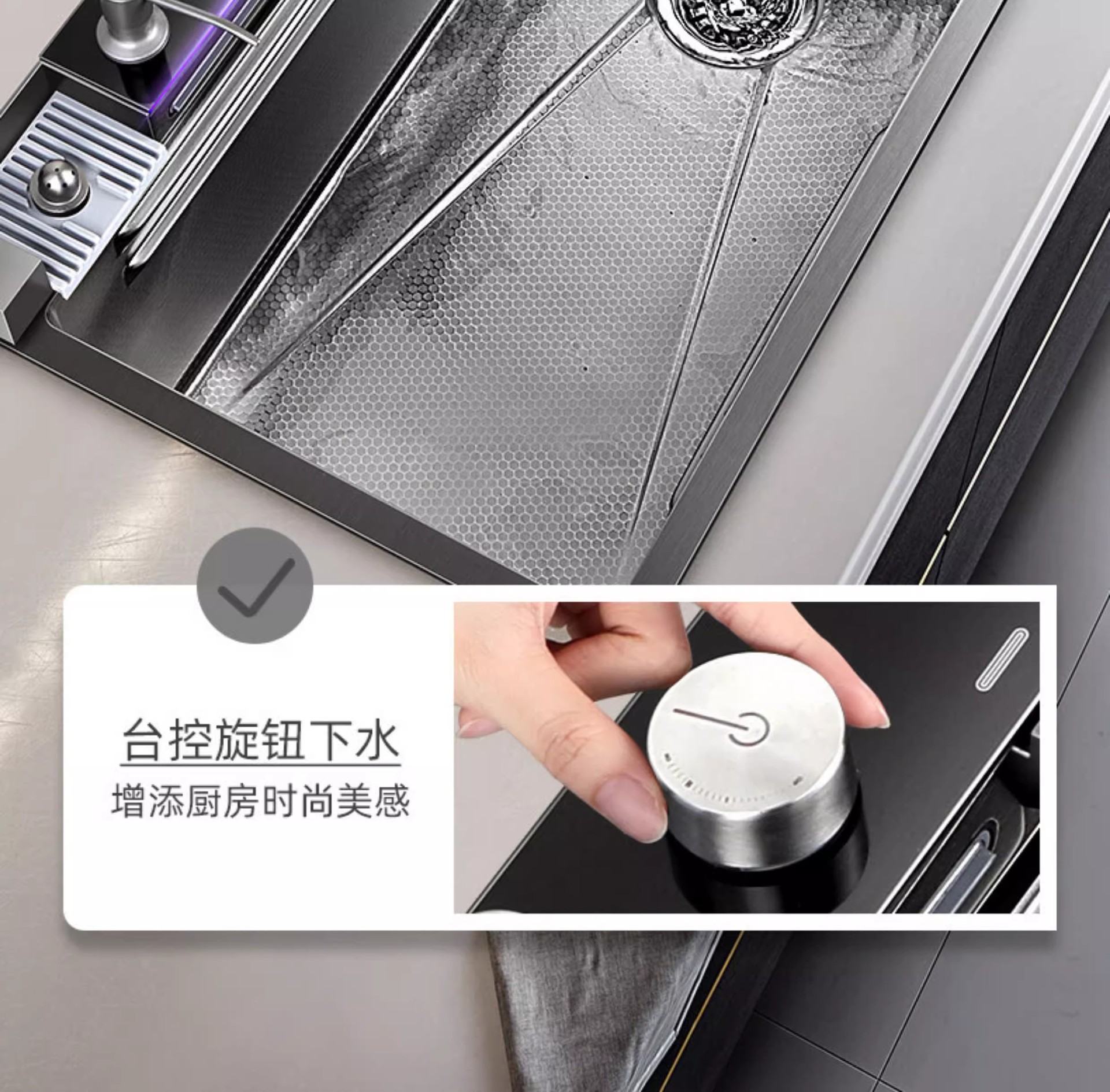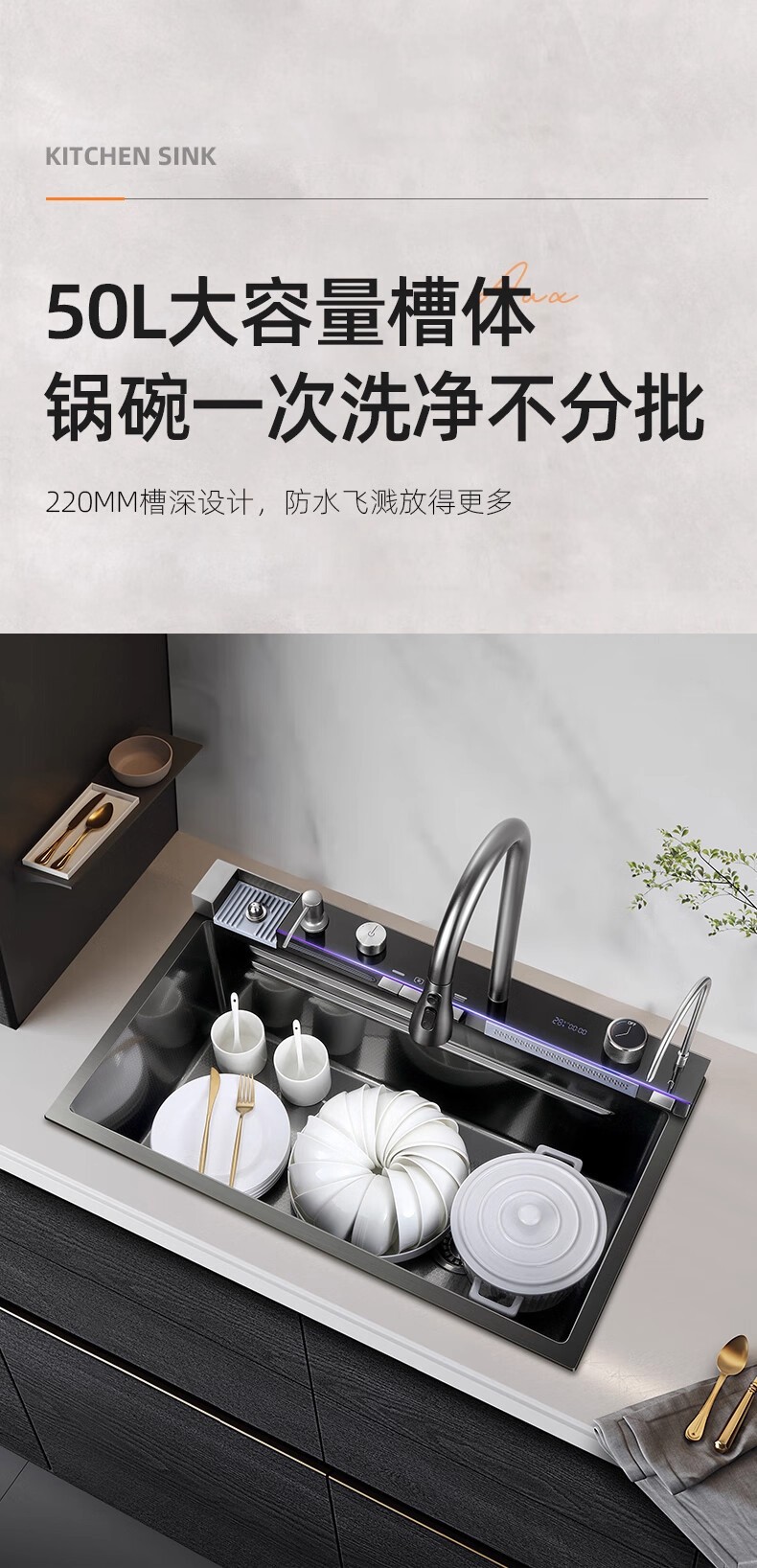超厚5.0鲸鱼飞雨瀑布304厨房蜂窝水槽单槽数显加厚不锈钢洗菜盆