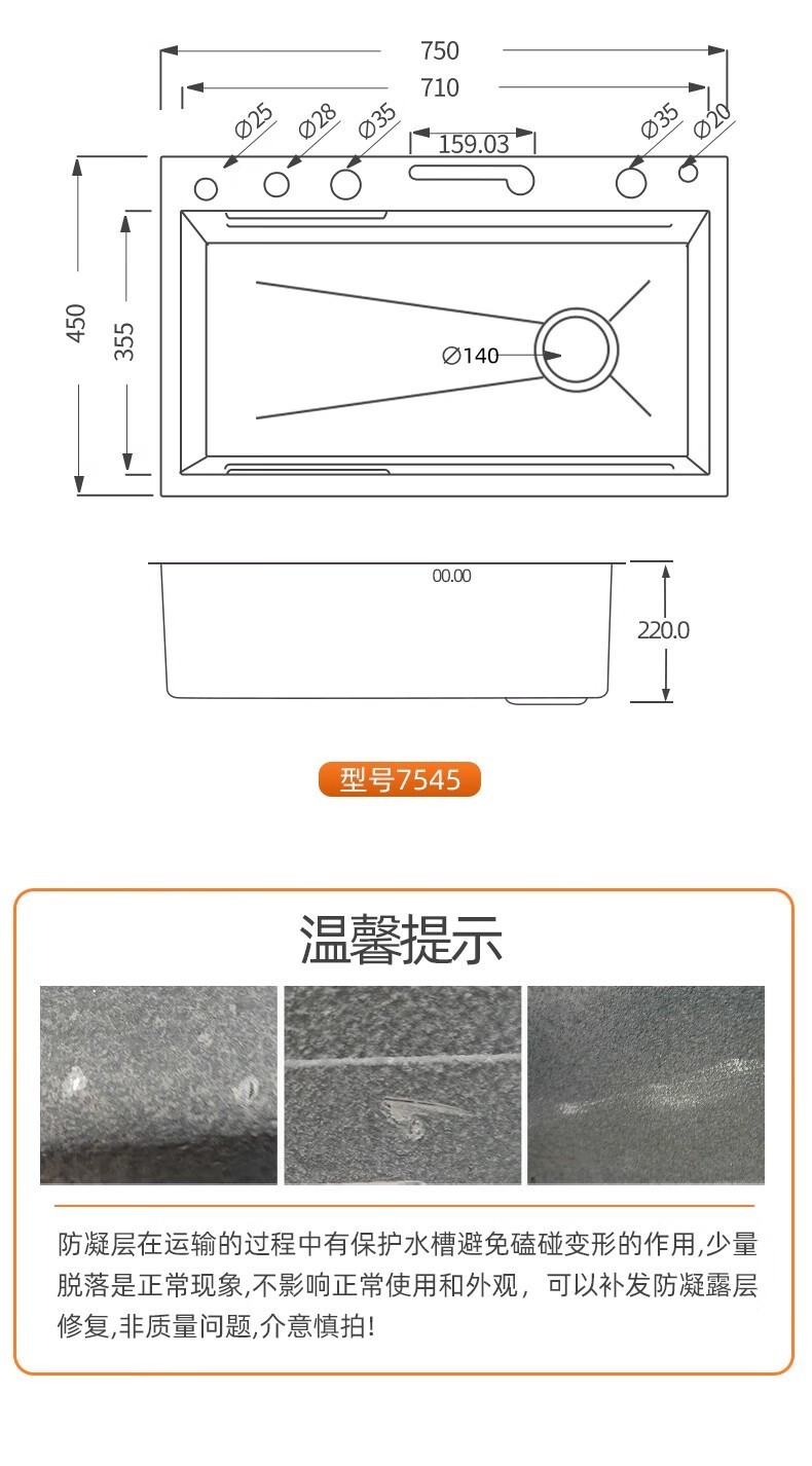 5.0蜂窝压纹加厚飞雨瀑布水槽厨房洗菜盆大单槽304不锈钢台下盆池