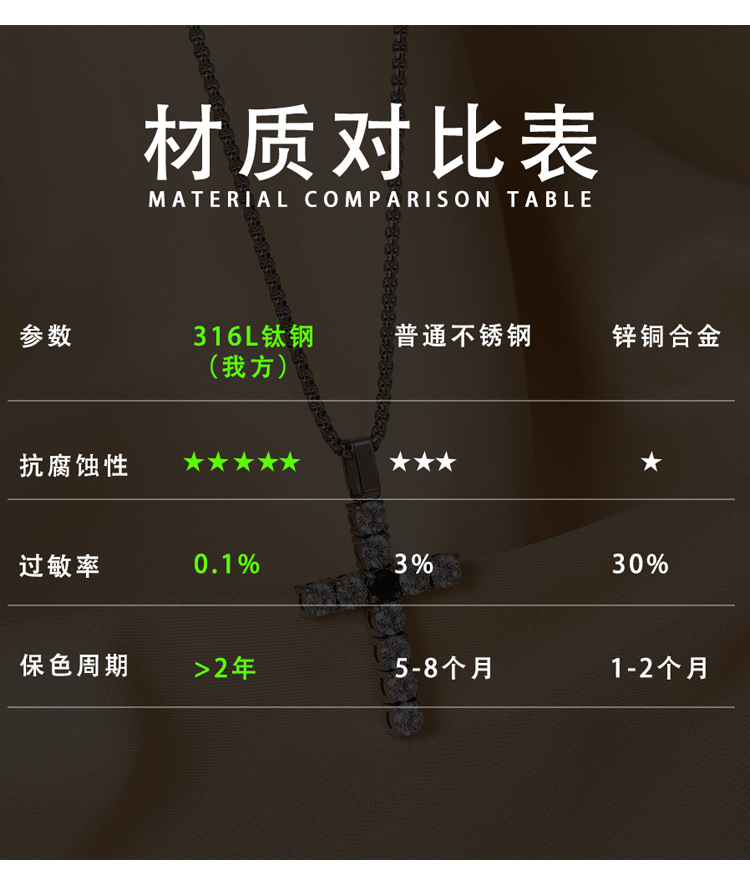国境を越えた人気のチタン鋼ヨーロッパとアメリカのクロスネックレスアクセサリー女性の夏のステンレス鋼非退色ジルコンライト高級ペンダント