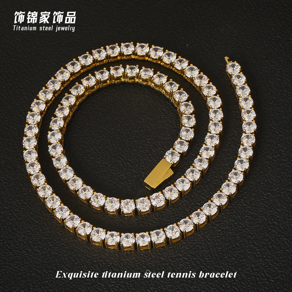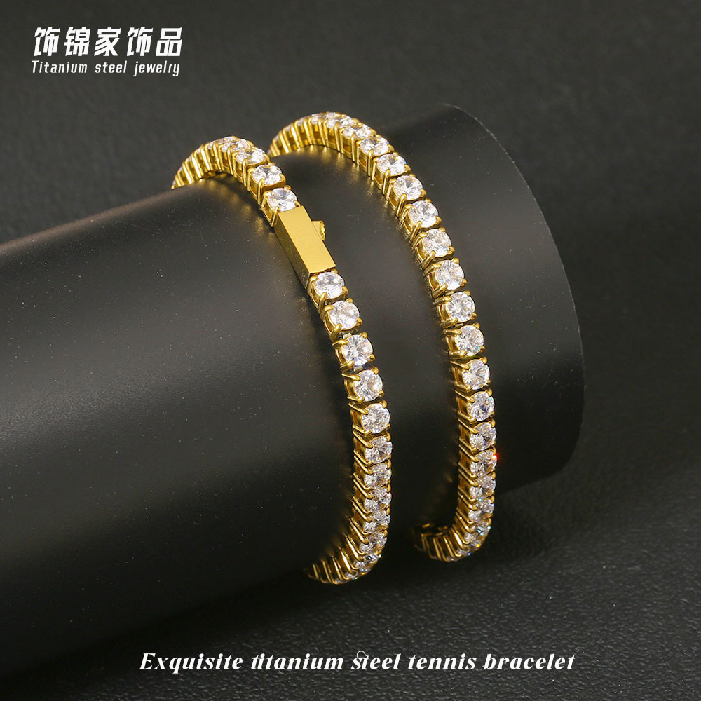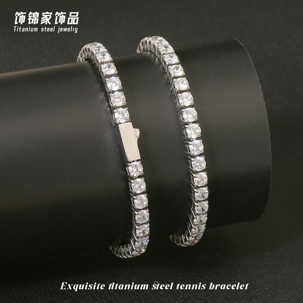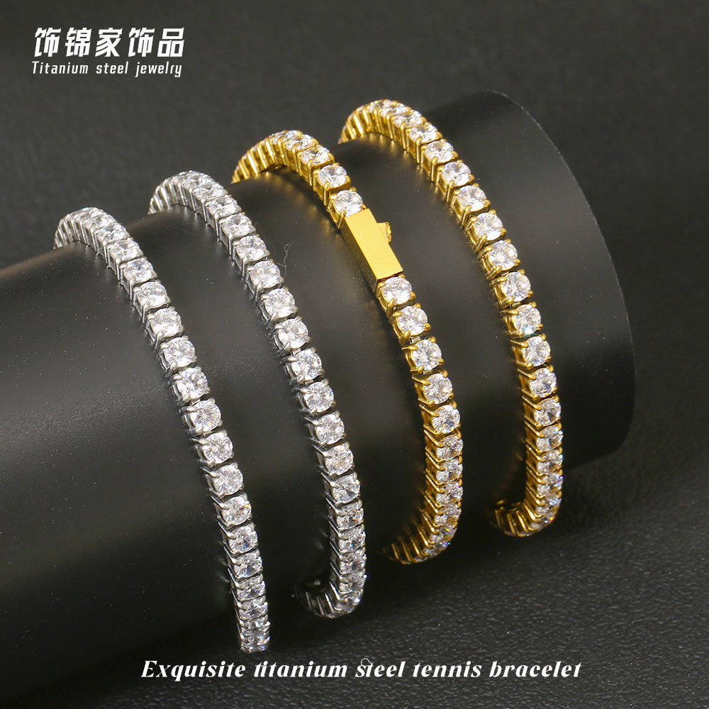 クロスボーダーステンレス3MM4MM5MM象眼ジルコンブレスレットチタン鋼テニスヒップホップニスチェーン