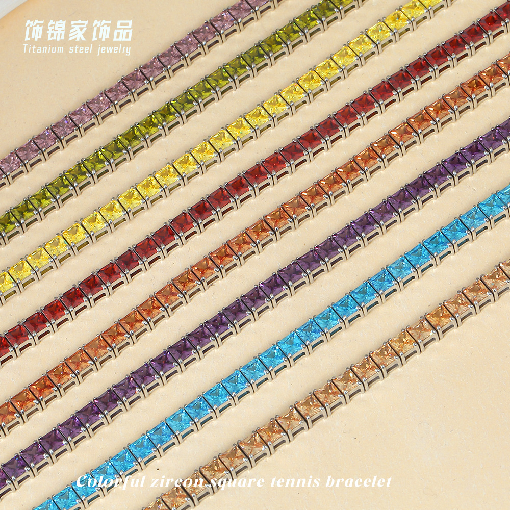 欧美轻奢316不锈钢4*4mm满钻网球手链 方型锆石手链 源头工厂直销