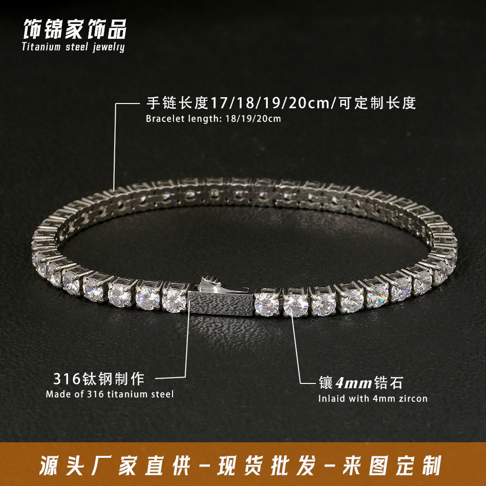 跨境不锈钢5mm满钻锆石网球手链圆钻爆闪钛钢不掉色男士嘻哈手饰