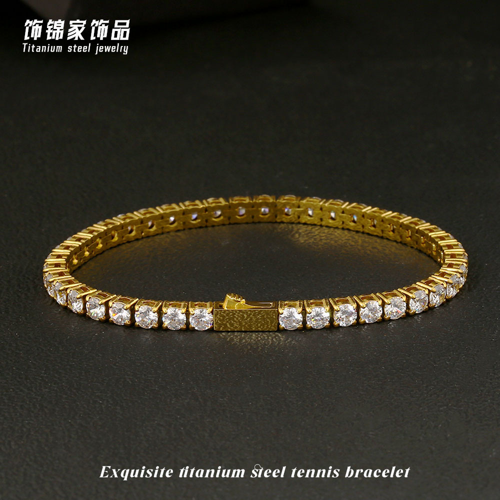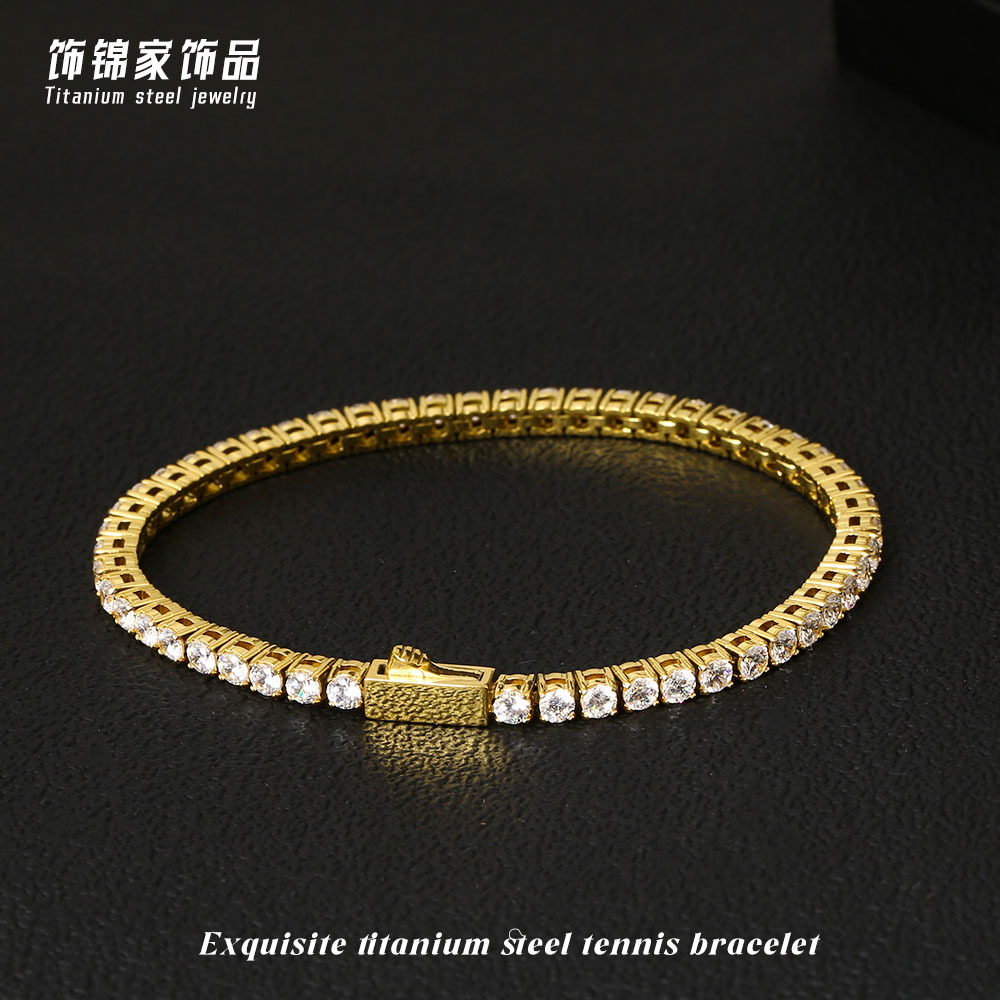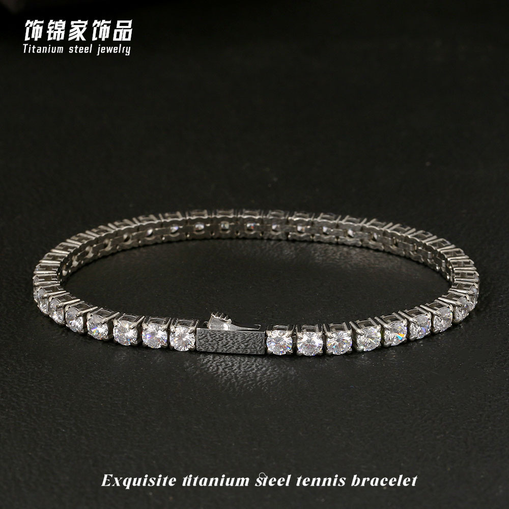 チタン鋼テニスチェーンブレスレット ジルコン高級感満載 ダイヤモンド一列 ヒップホップ 海外貿易 メンズブレスレット 欧米風 色褪せなし