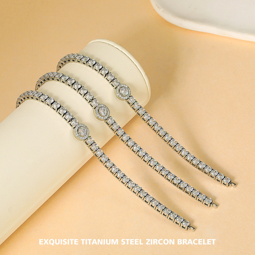 跨境满钻锆石网球链手链保色满钻爆闪男女通用嘻哈风钛钢轻奢手饰