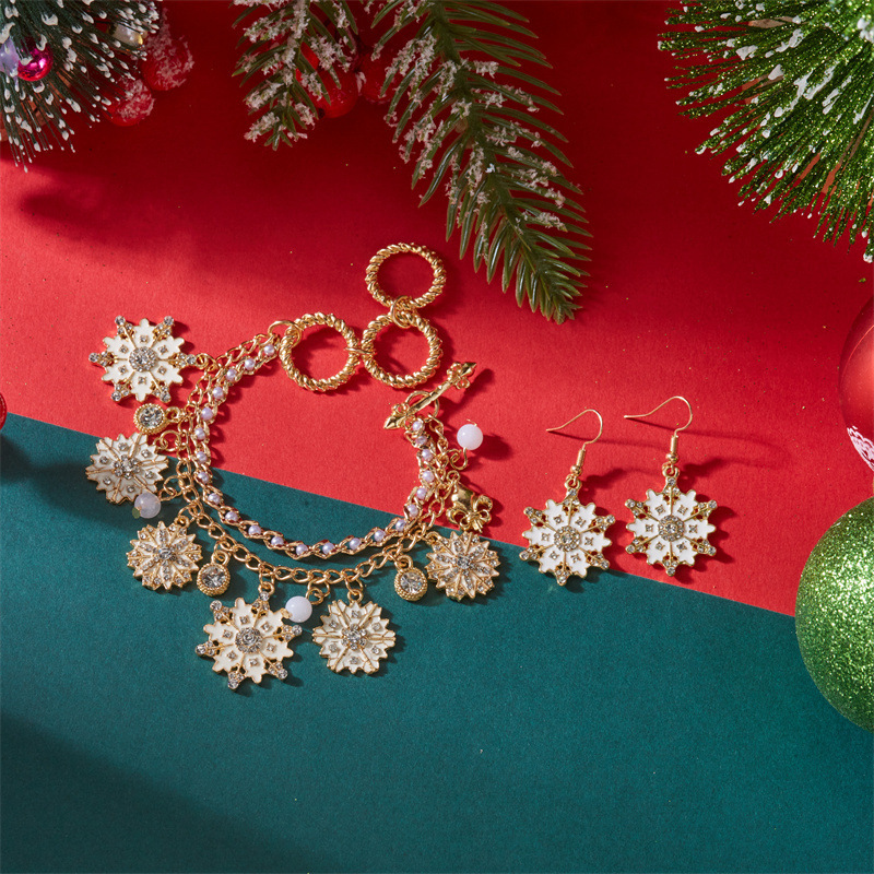 欧美跨境新款雪花手链 时尚创意设计圣诞镶钻夸张雪花手链耳环女