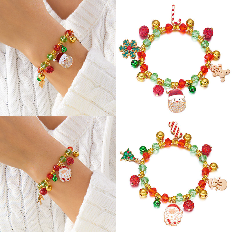 国境を越えた新しいビーズブレスレットクリスマス祭りお祝いヘラジカサンタクロース杖雪花手袋水晶ブレスレット