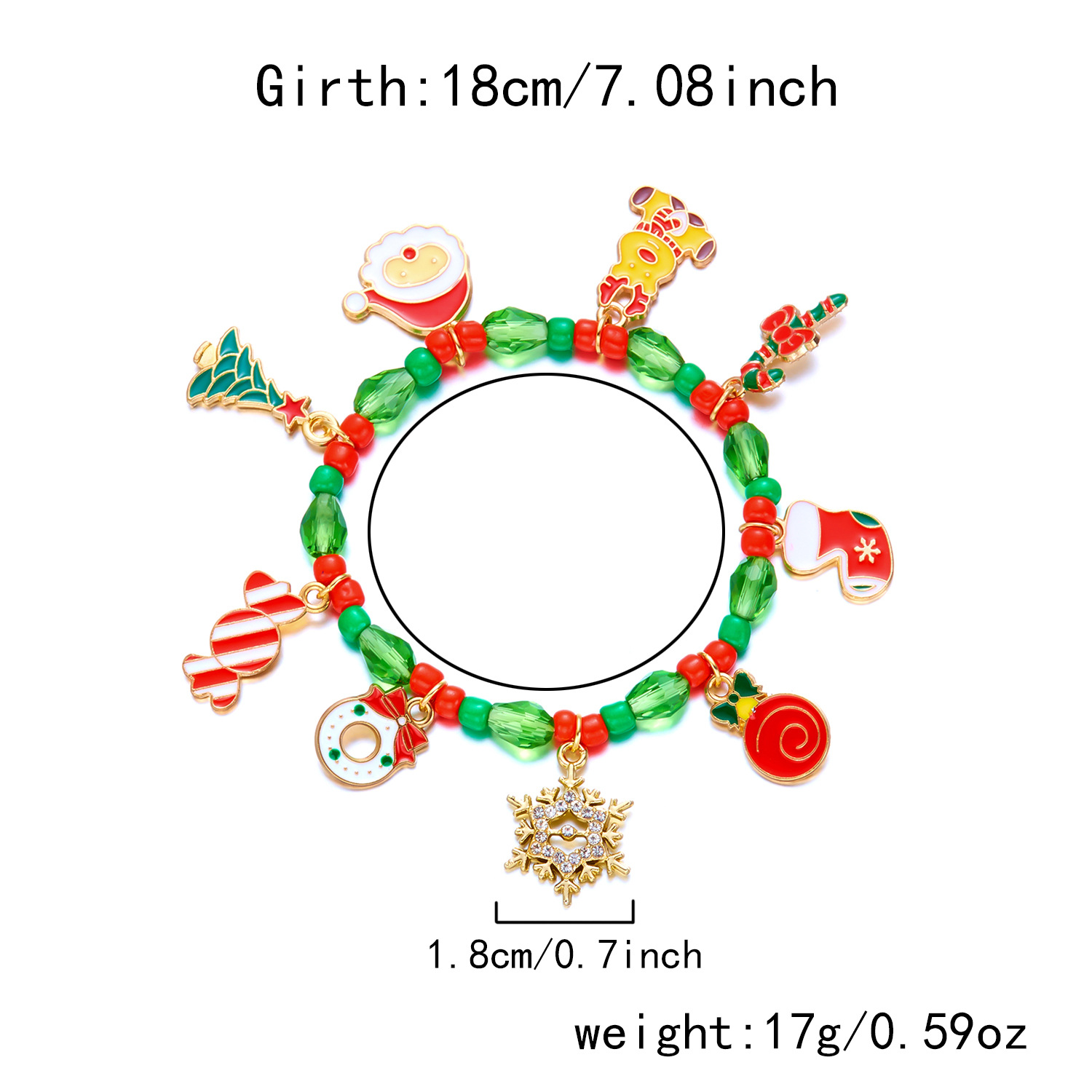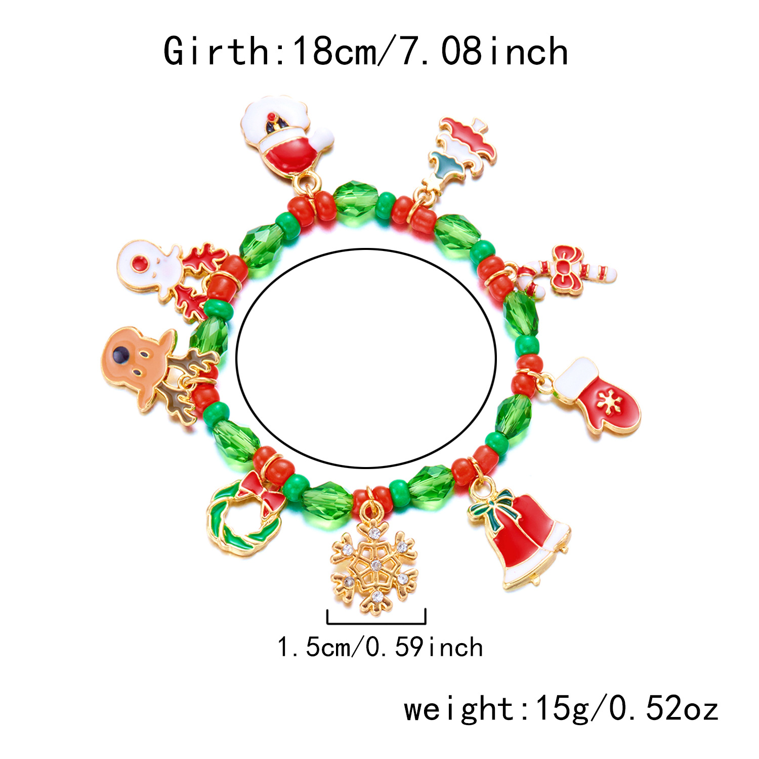亚马逊跨境热卖圣诞手链卡通红绿撞色圣诞老人圣诞树雪花吊坠手链