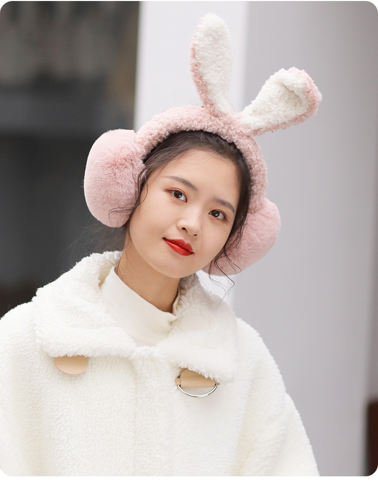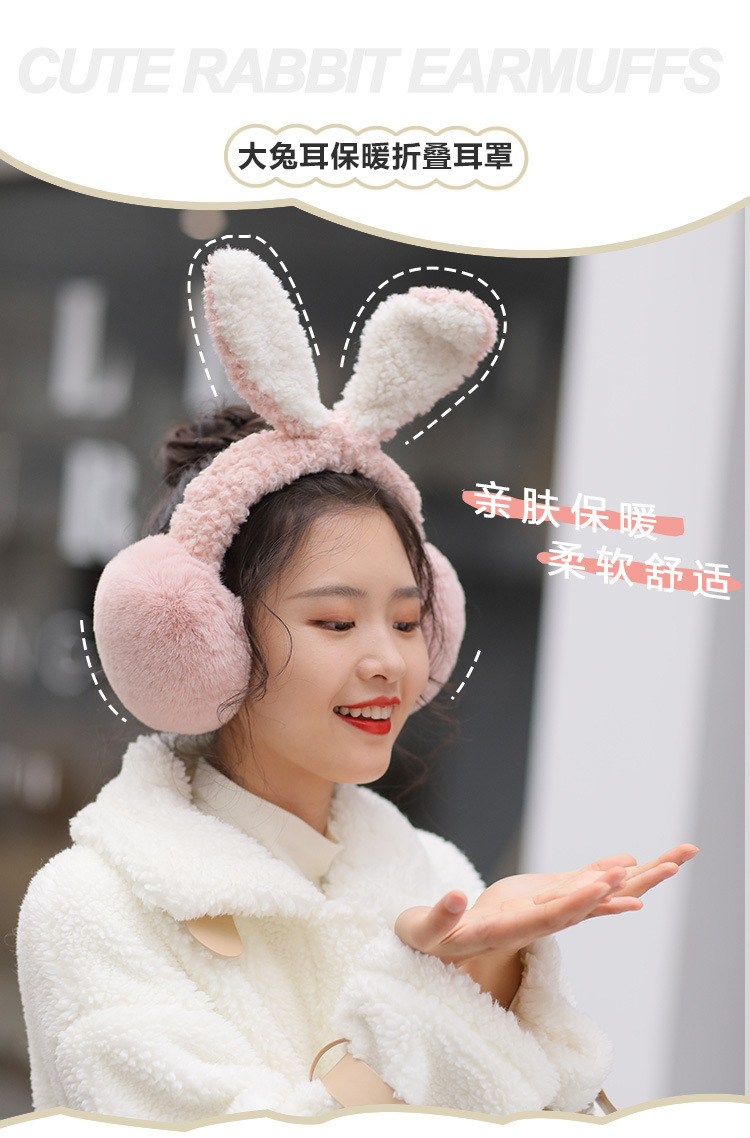 秋冬保暖耳罩卡通兔耳朵女耳捂可折叠甜美可爱毛绒高级感防寒耳暖