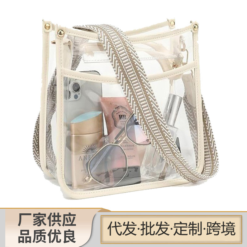 AmazonクロスボーダーホットスタイルPVC透明レディースショルダークロスボディバッグレザートリムシンプルトレンドジッパーショルダーバッグ