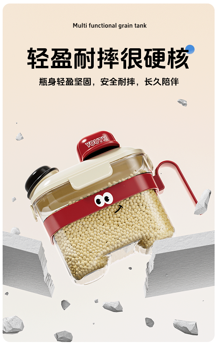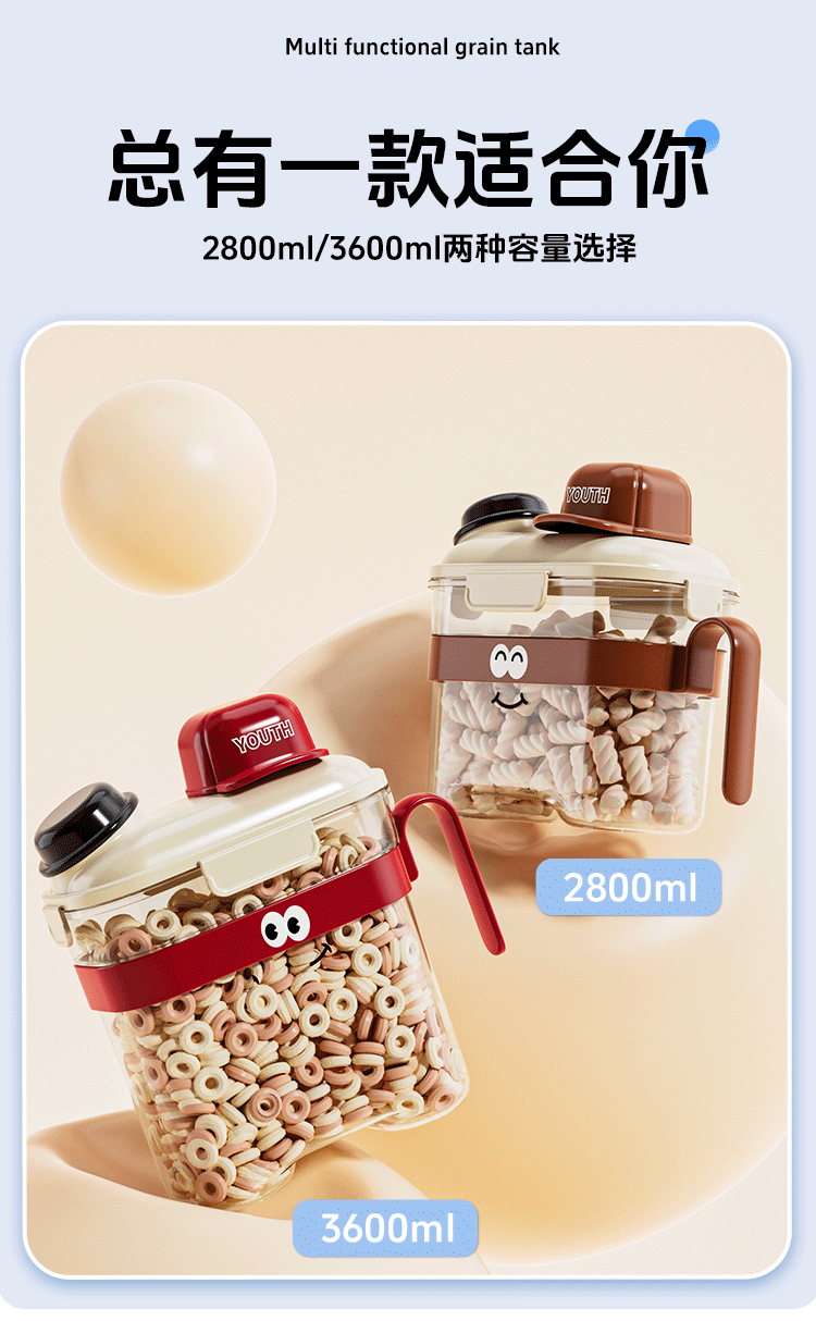 五谷杂粮罐手提零食燕麦小米麦片收纳桶防潮密封罐萌趣猫粮储存桶
