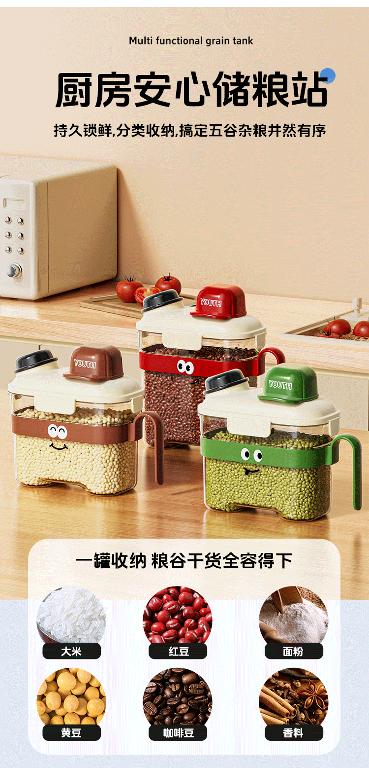 卡通杂粮罐防虫防潮大容量干果香料密封罐家用食品级厨房五谷米桶