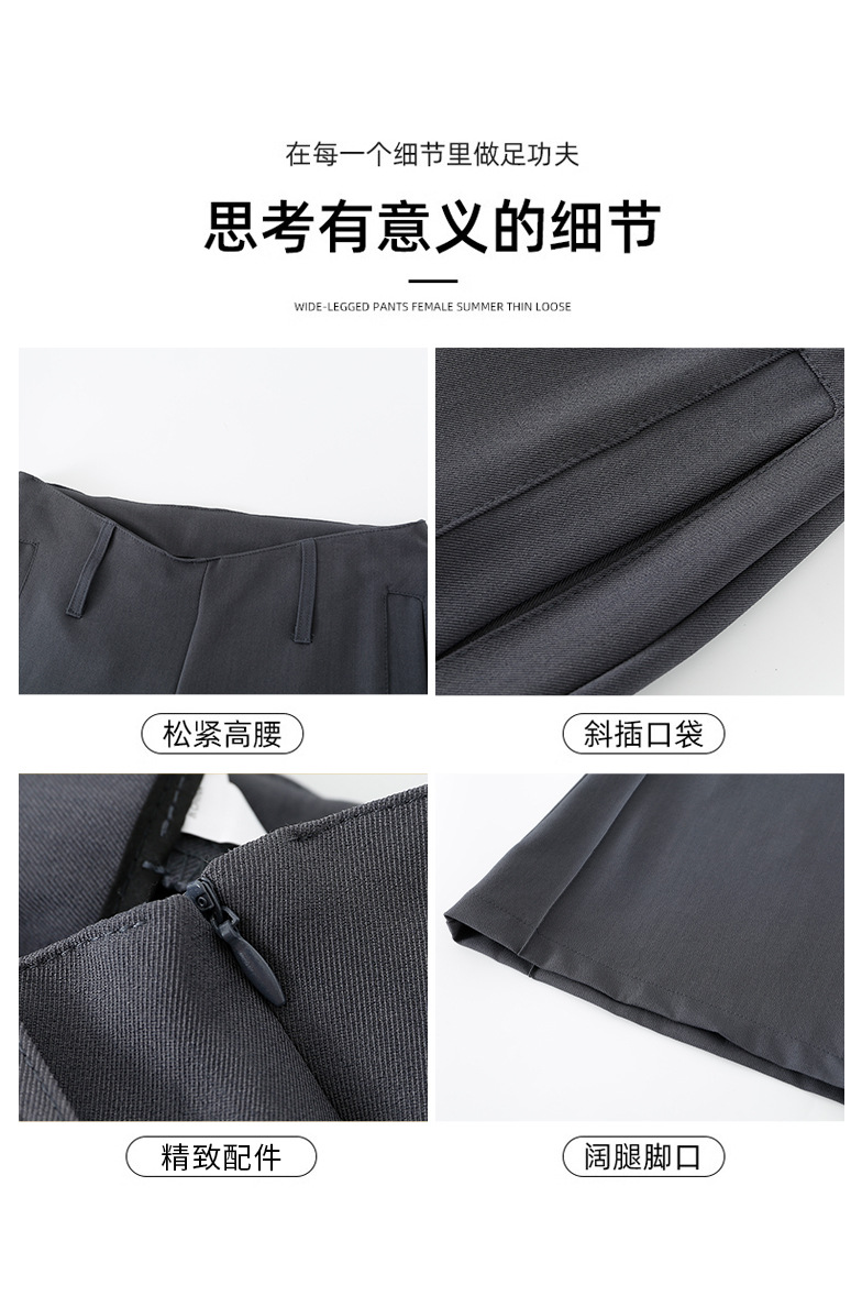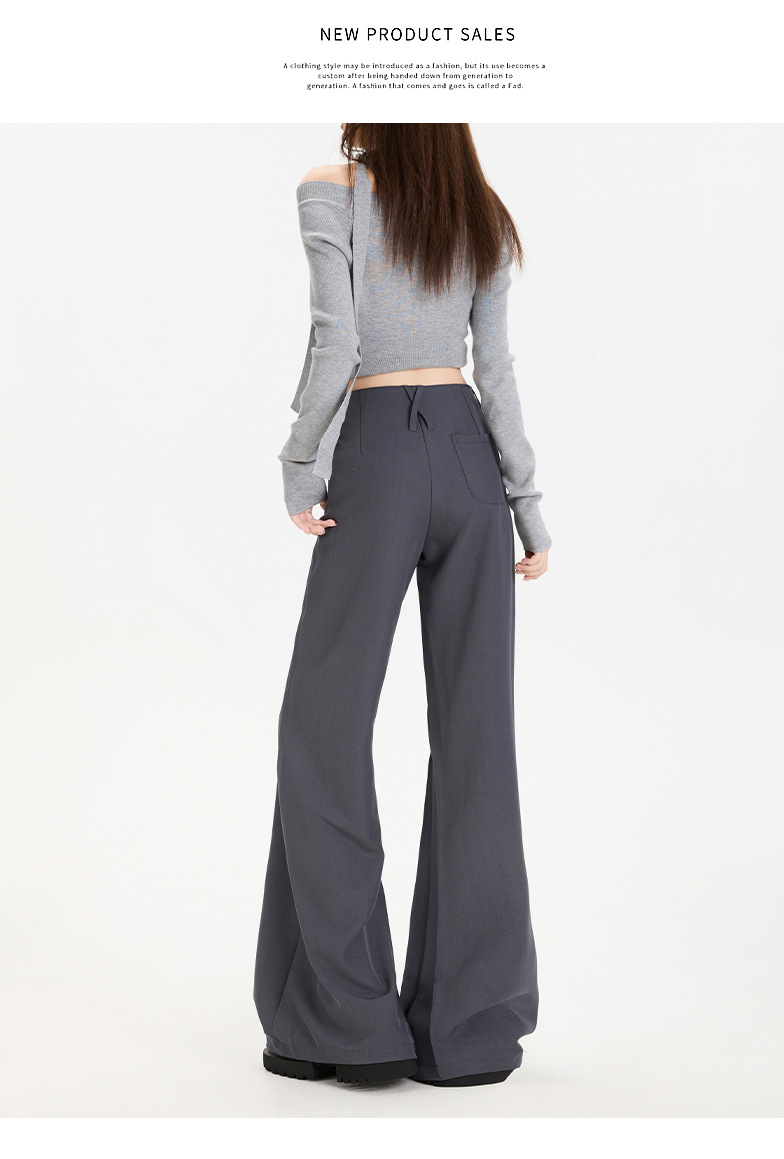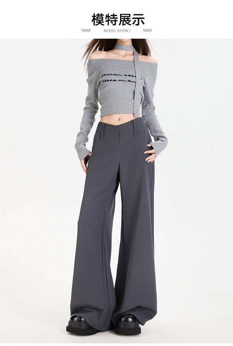 灰色美式V字低腰微喇西装裤女春秋夏季宽松垂感不贴腿拖地阔腿裤