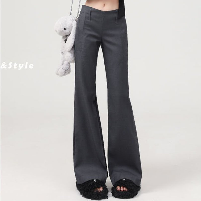 灰色新款辣妹低腰微喇休闲裤女秋冬修身显瘦垂感马蹄西装裤子春秋