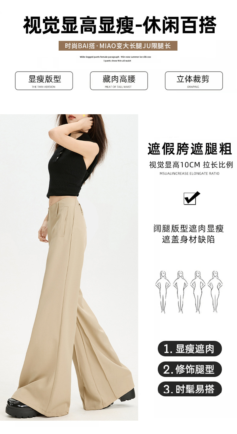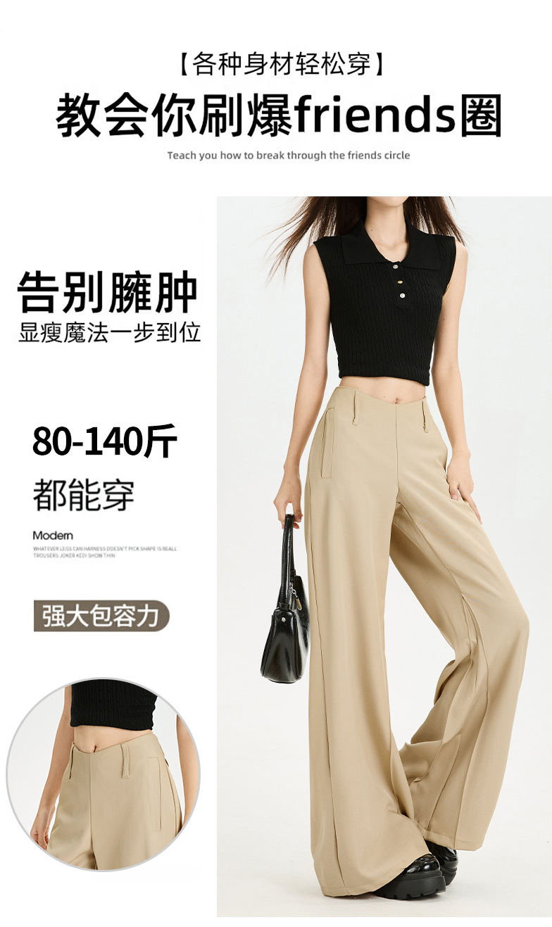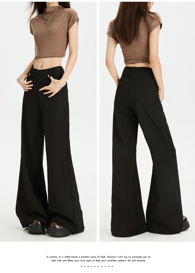 美式复古宽松长裤通勤气质低腰直筒微喇显瘦垂感时尚休闲西装裤女