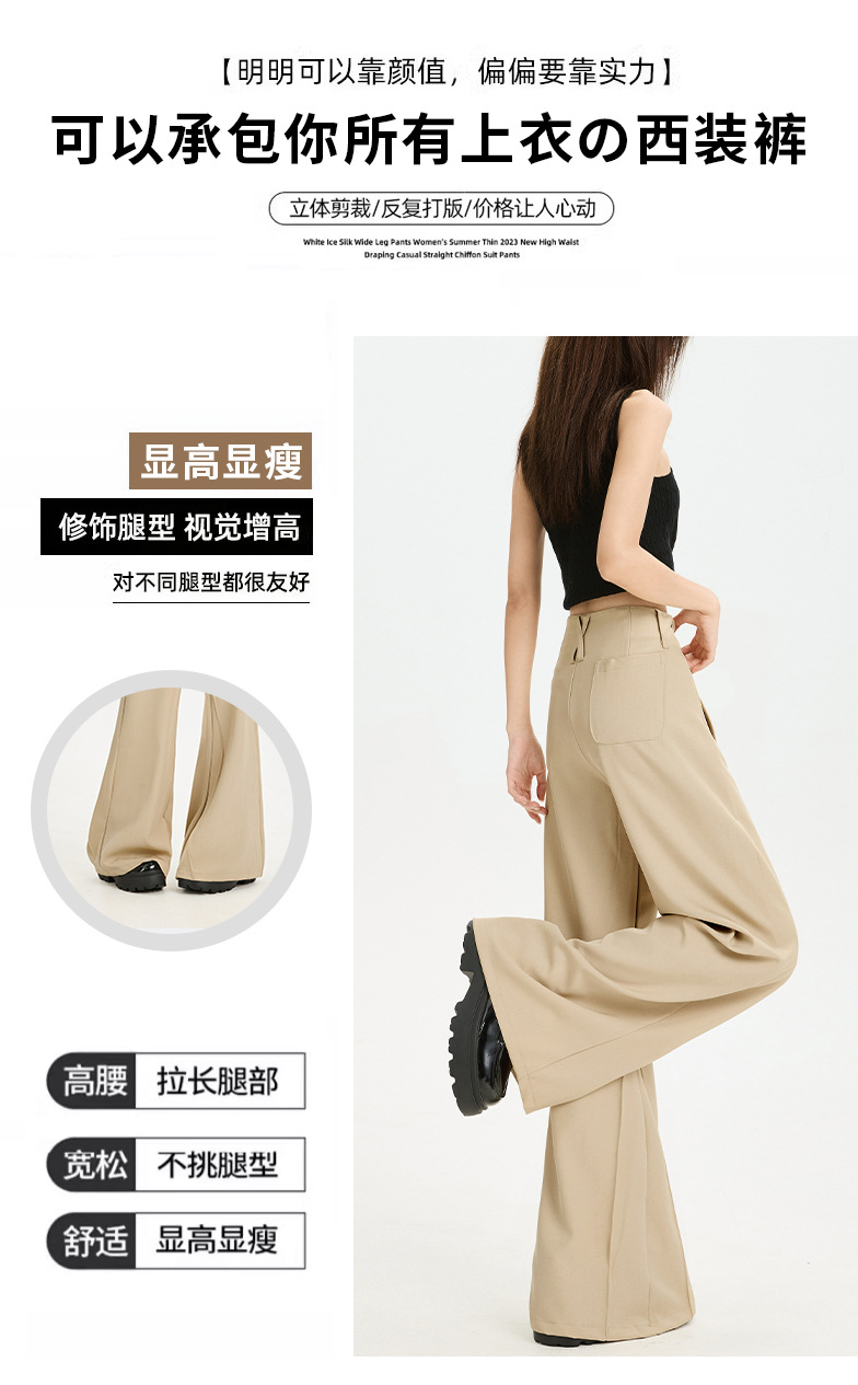 オレンジシルクの女性服 # 女性のためのスリムフィットスーツパンツ 2025 秋の新しいハイエンドの薄い馬蹄パンツ