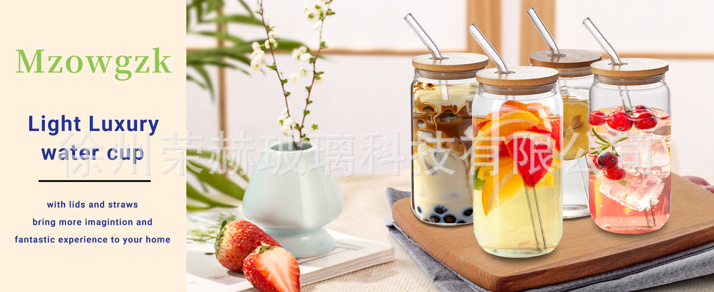 Amazon 高ホウケイ酸ストローカップ透明ガラス高温耐性コーラカップ竹蓋ジュース冷たい飲み物夏の水カップ