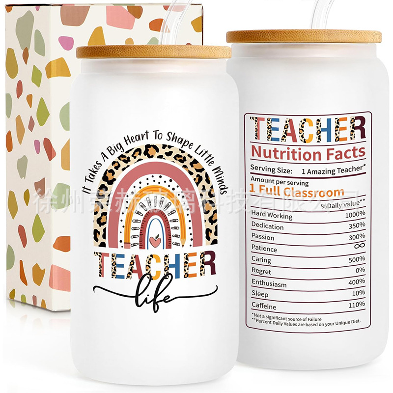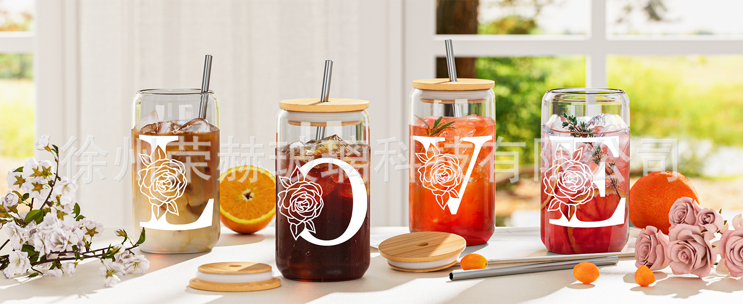 跨境可乐杯16oz玻璃杯DIY定制图案亚马逊爆款吸管咖啡杯节日礼品