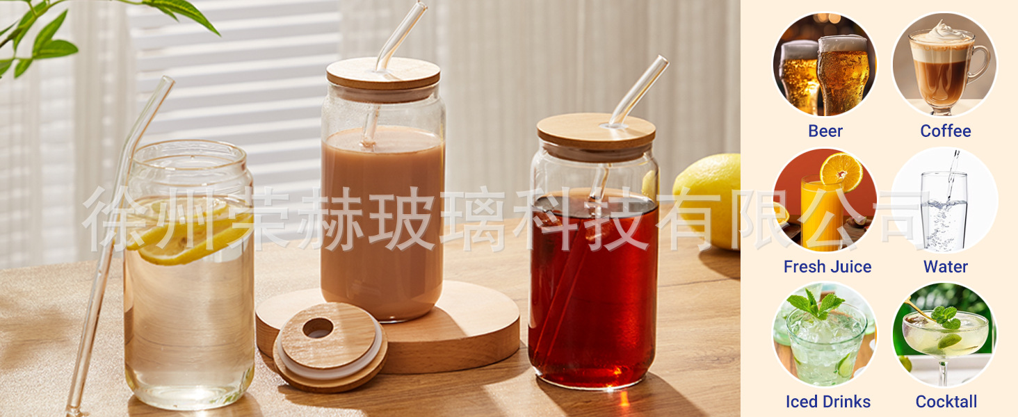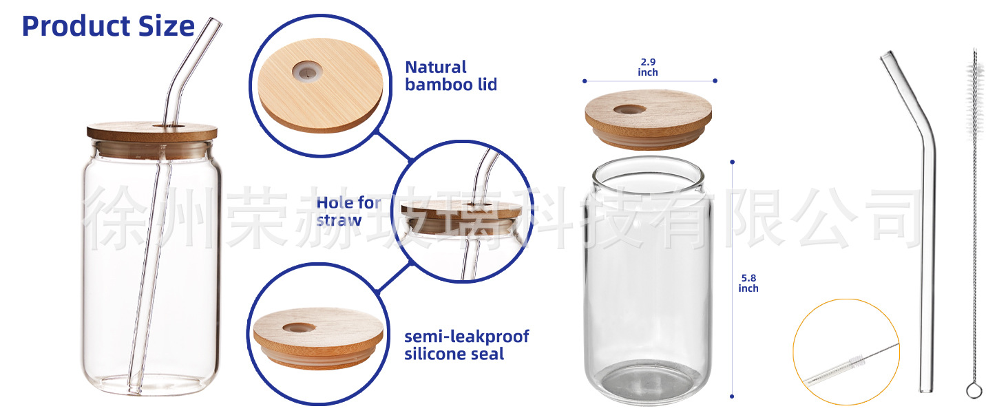 跨境16oz可乐杯高硼硅玻璃杯带竹木盖亚马逊专供定制图案创意爆款
