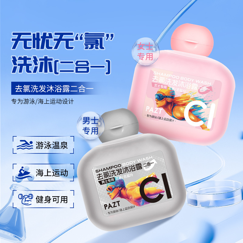 游泳专用去氯沐浴露洗发水二合一馥珮除氯男士女士洗护沐套装除盐