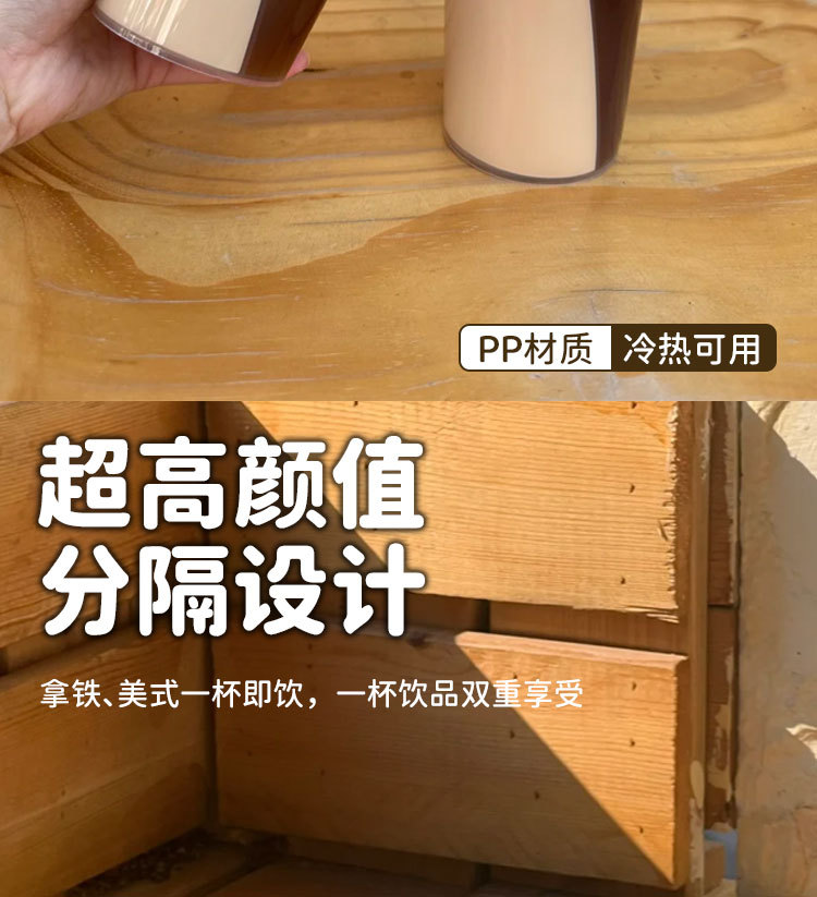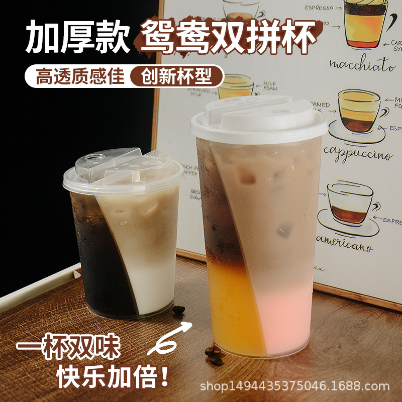 ネットセレブダブルエンジョイカップ、1カップ2ドリンク、カップルダブルカップ、厚みのあるダブルガンS、ユアンヤンカップ、プラスチックパッケージミルクティーカップ