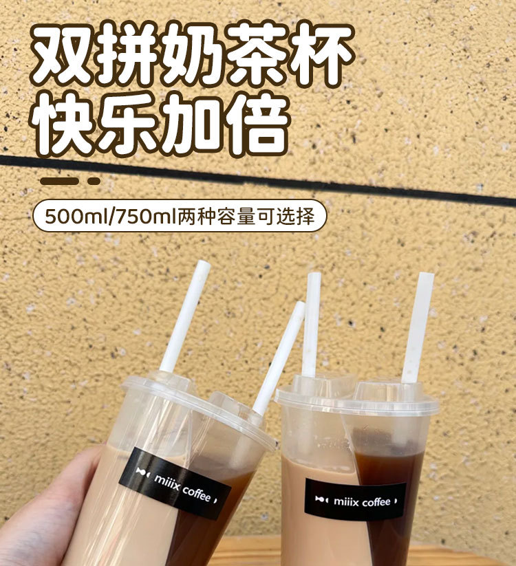 一次性双拼奶茶杯S型PP材质大口径冷饮外带杯防漏盖鸳鸯杯奶茶杯