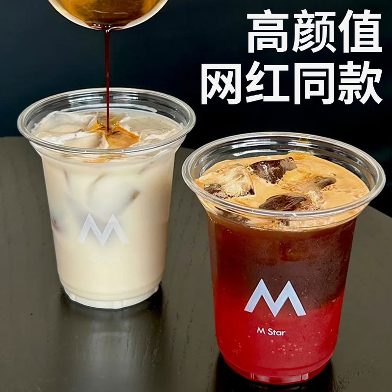 Manner使い捨てコーヒーカップ携帯食品級冷たい飲み物透明PETカップ氷アメリカ式蓋付き上海