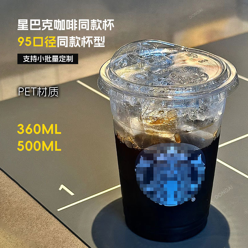 大Mと同じスタイルの使い捨てコーヒーカップ、透明PET98口径カップ、冷たい飲み物用カップ、ミルクティーカップ、ロゴ印刷可能