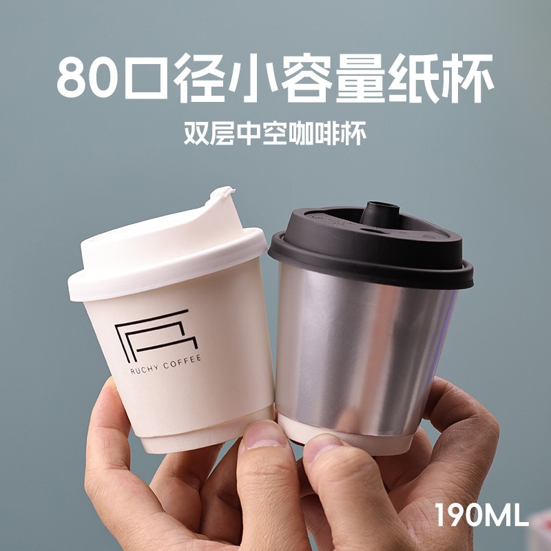 小容量双层一次性咖啡杯6.5oz食品级带盖试喝迷你纸杯可印刷logo