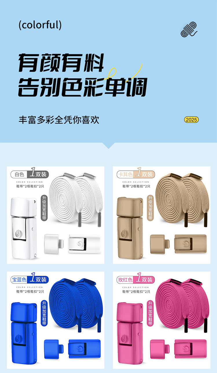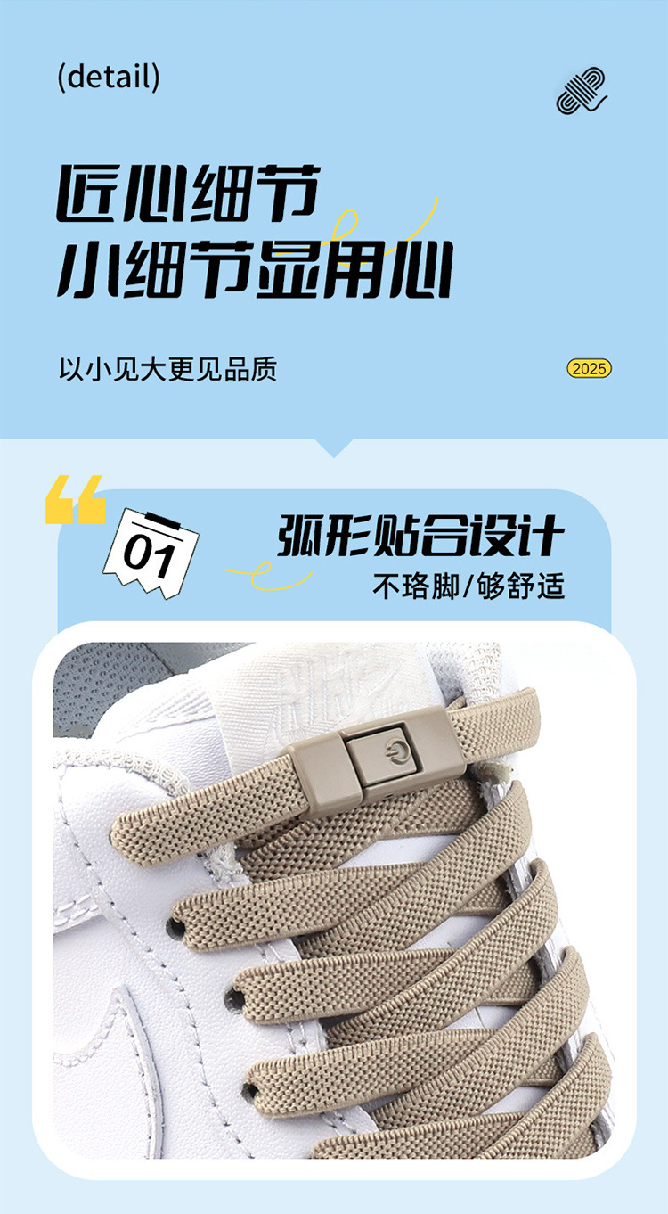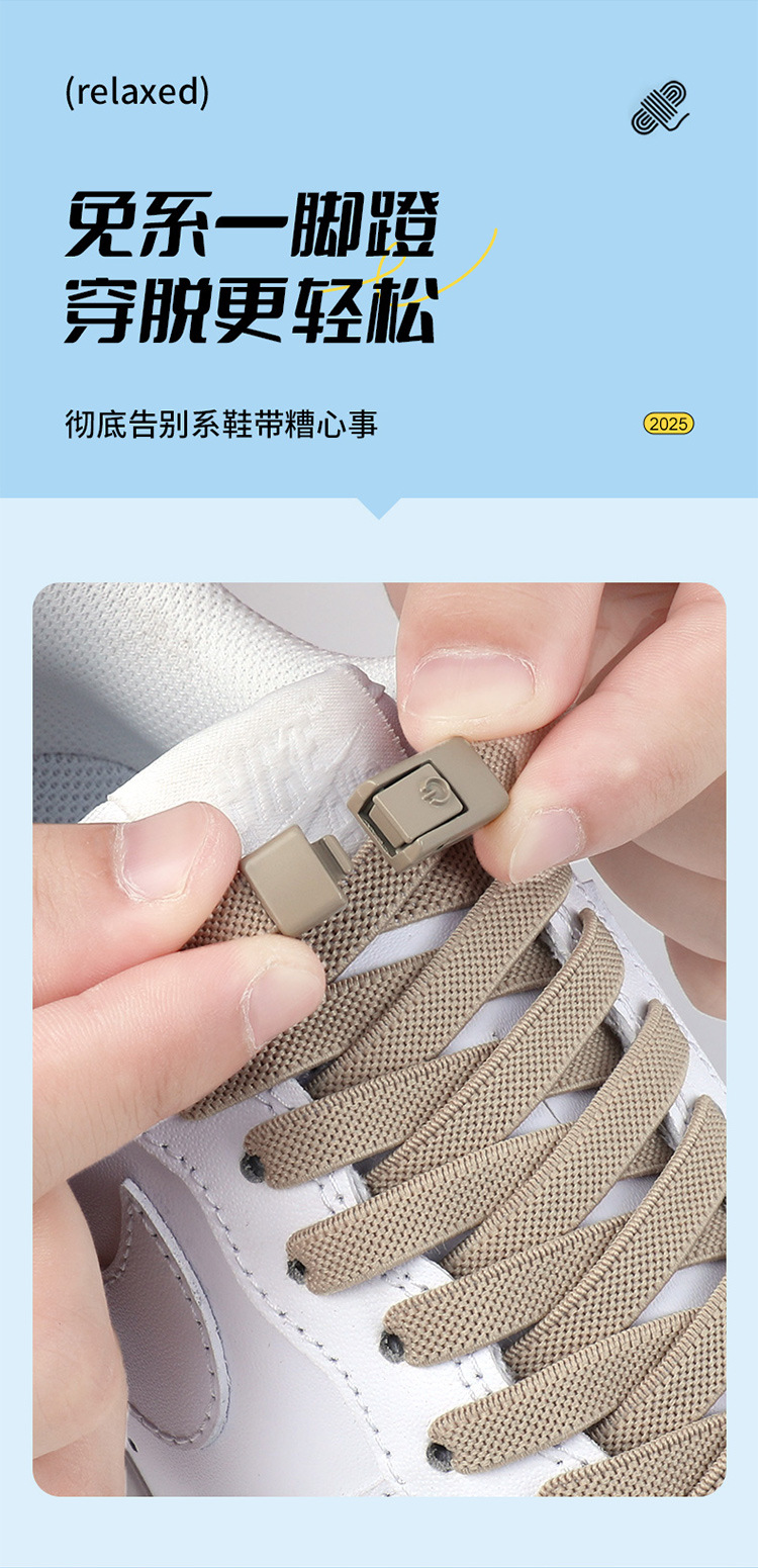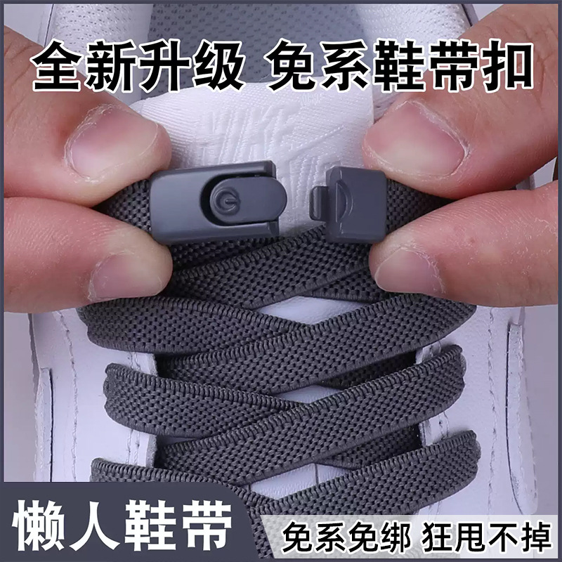 懒人免系鞋带绳弹力松紧男女款扁平免绑鞋带扣按压固定器鞋带批发