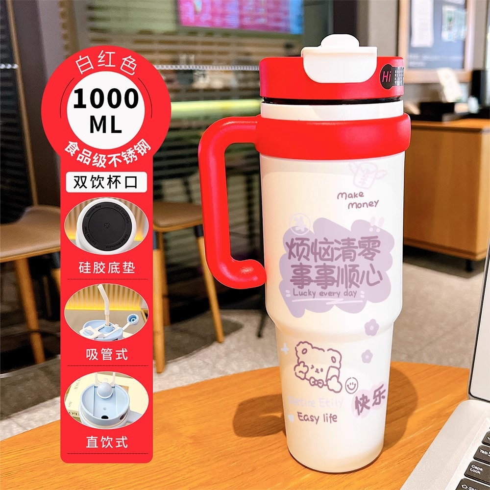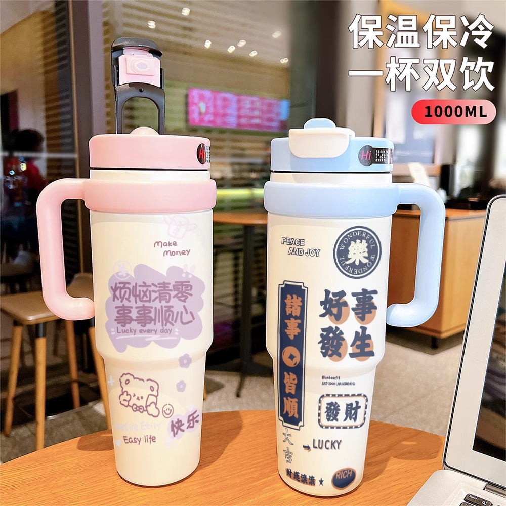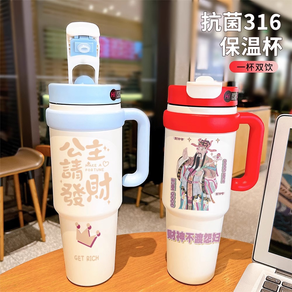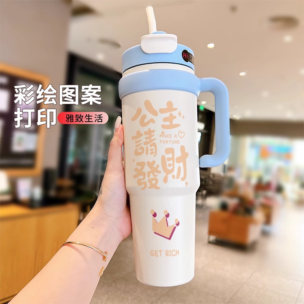 304不锈钢保温杯大容量冰霸杯吸管巨无霸杯便携带把柄运动新款杯