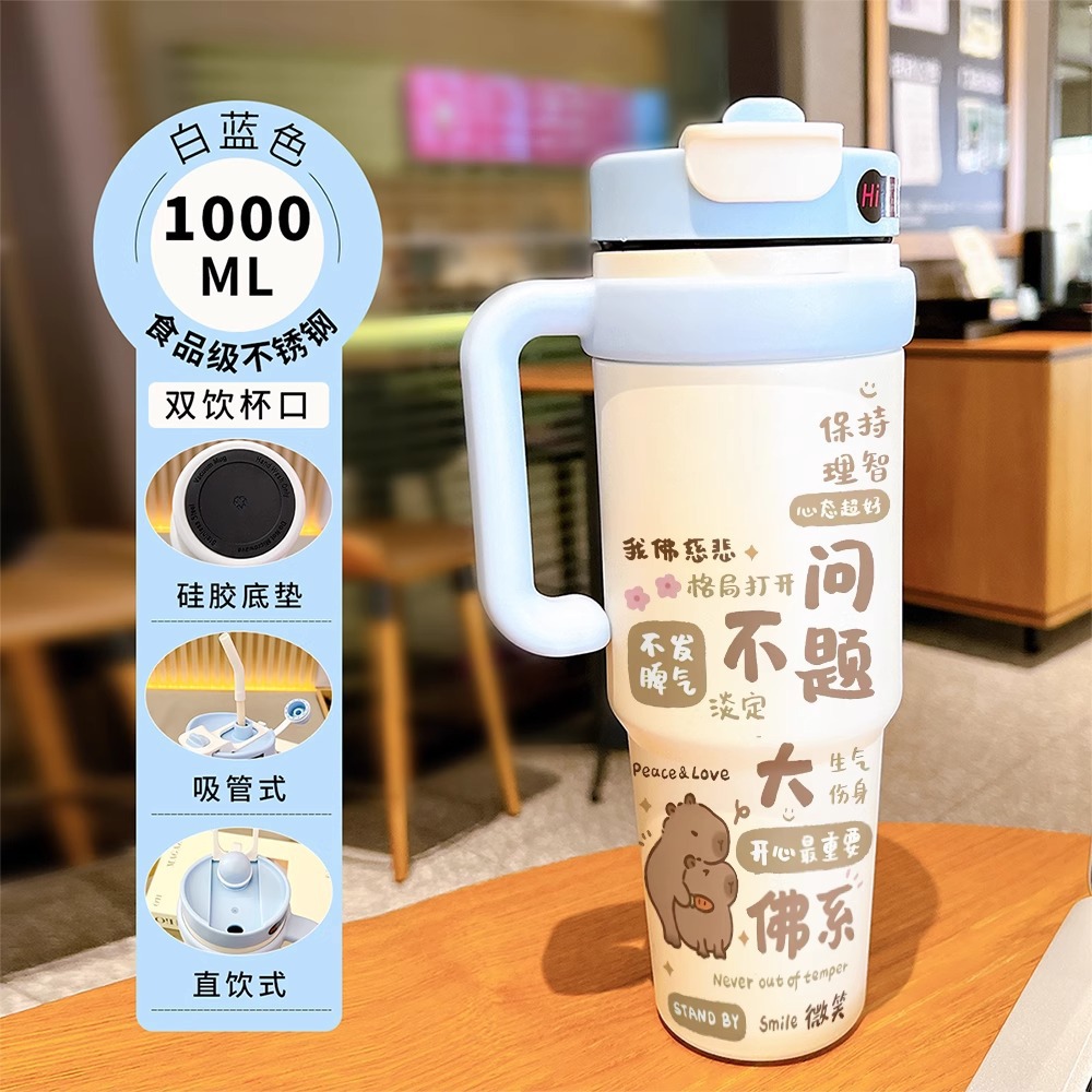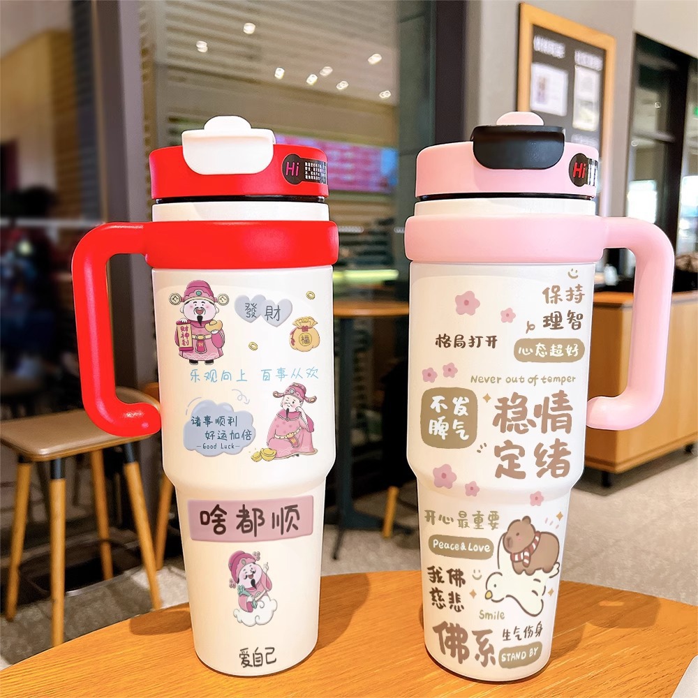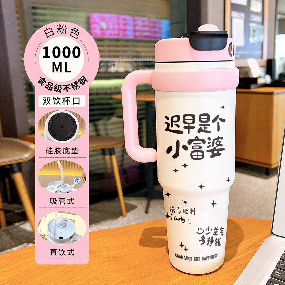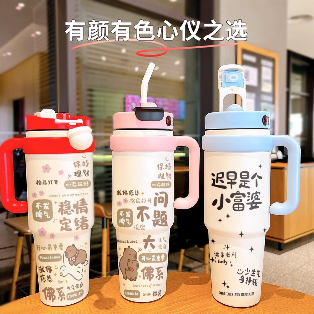 304不锈钢保温杯大容量冰霸杯吸管巨无霸杯便携带把柄运动新款杯