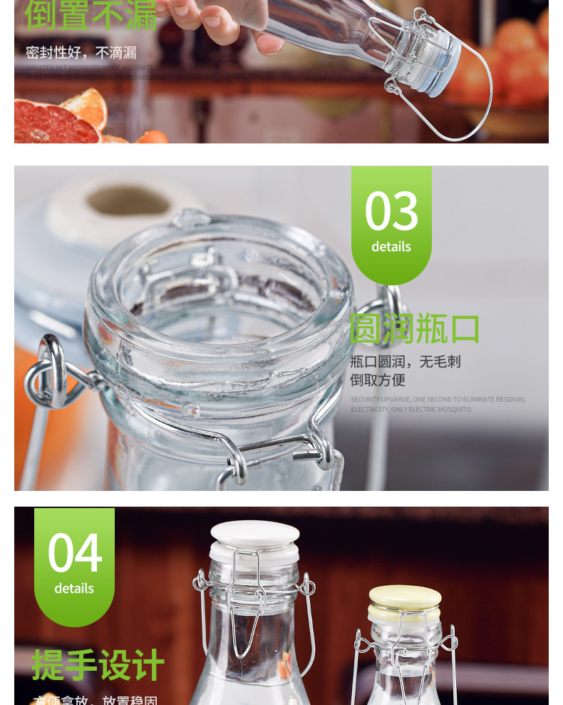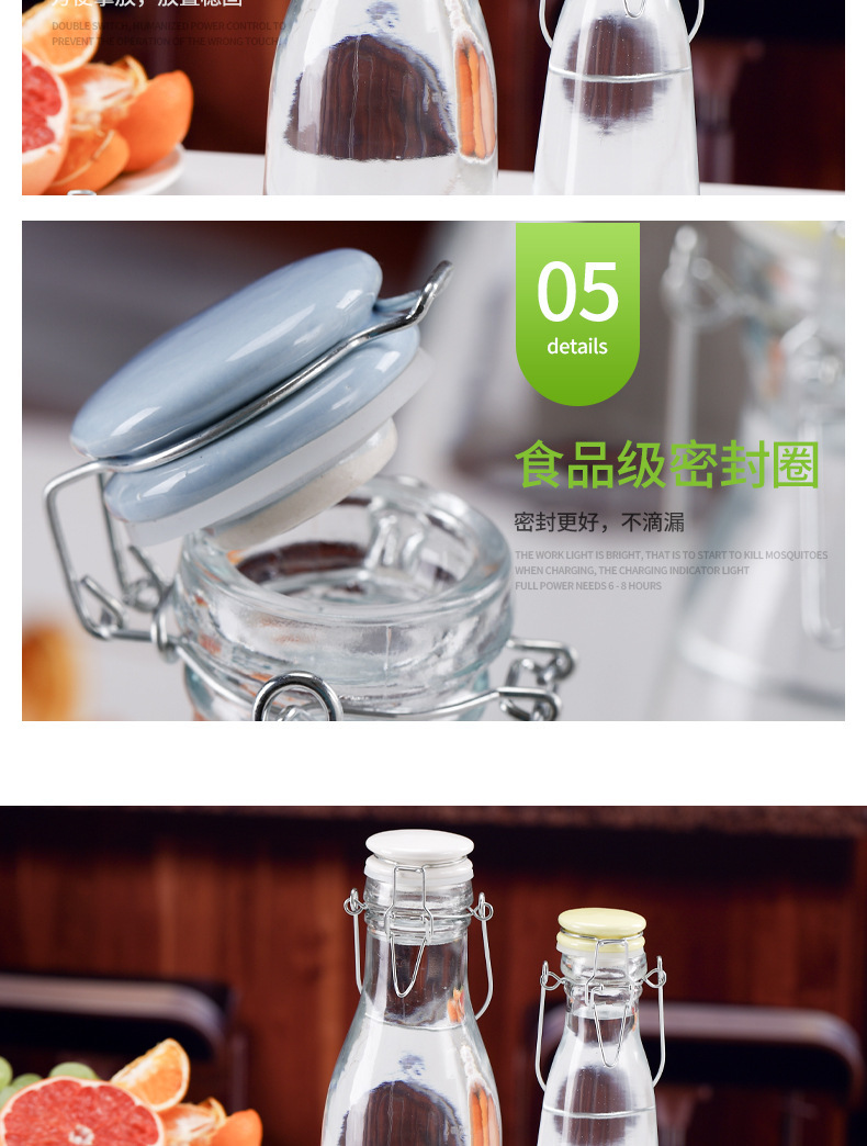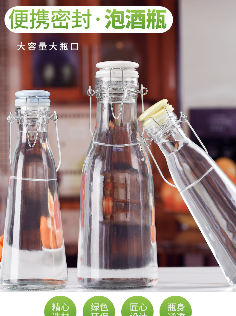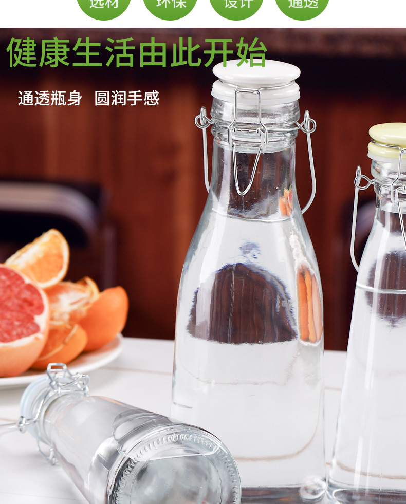 牛乳瓶手提げジュース瓶酵素瓶泡酒瓶陶磁器蓋バックル密封缶水升瓶食品級ガラス