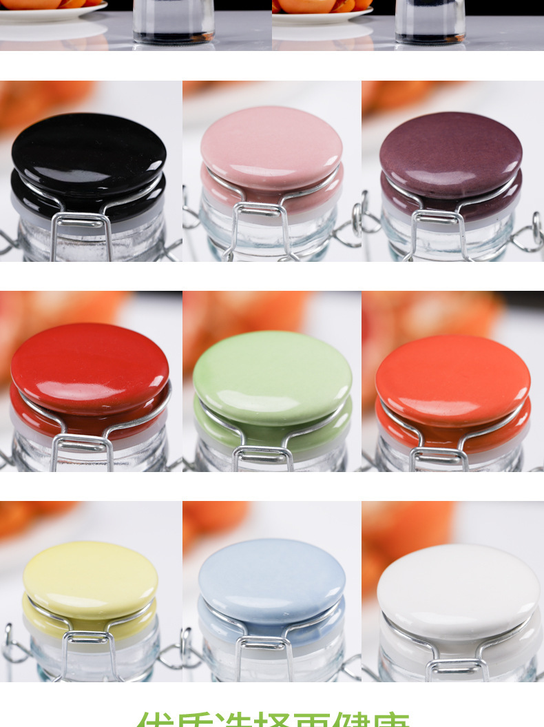 外付けのガラスミルクティーの瓶の新鮮なオイルの瓶のバックルの陶磁器の蓋の酵素のワインのジュースの飲み物は酒の瓶を密封します。