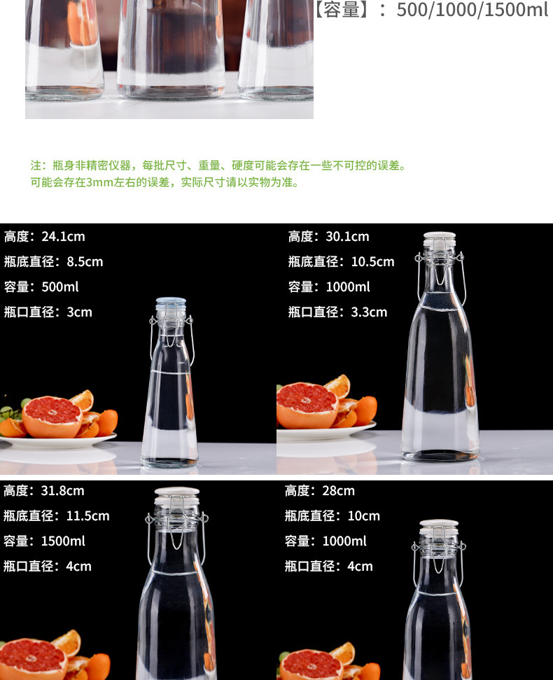 跨境杨梅酒瓶果酒水果自酿空瓶手提带盖密封罐食品级玻璃家用泡酒