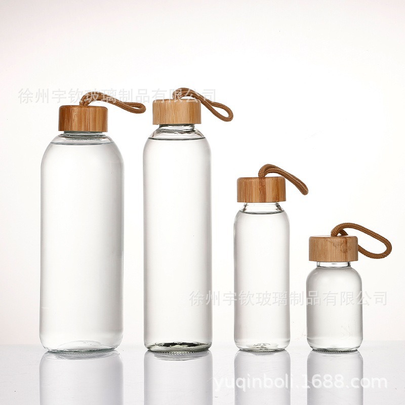 新款彩色玻璃杯创意汽水瓶便携带提绳运动水杯礼品刻字印logo定制