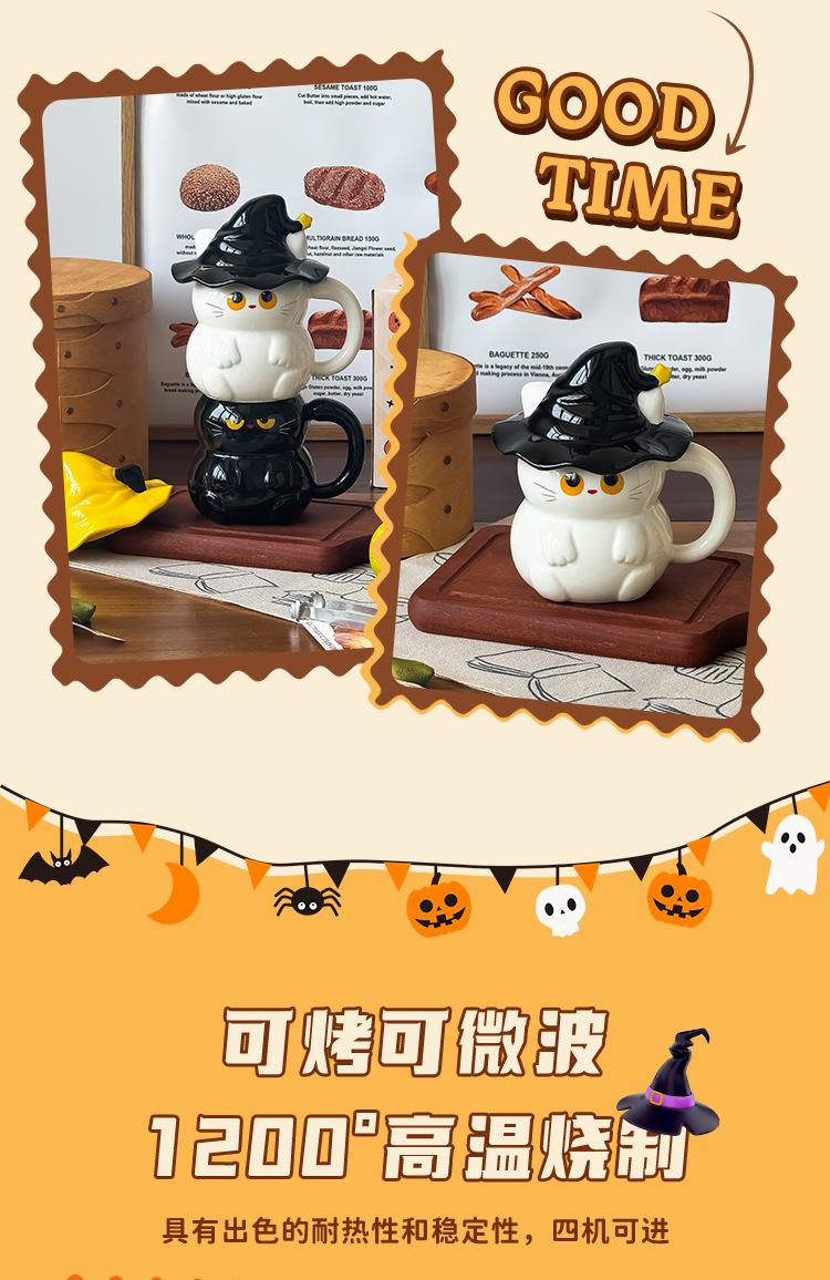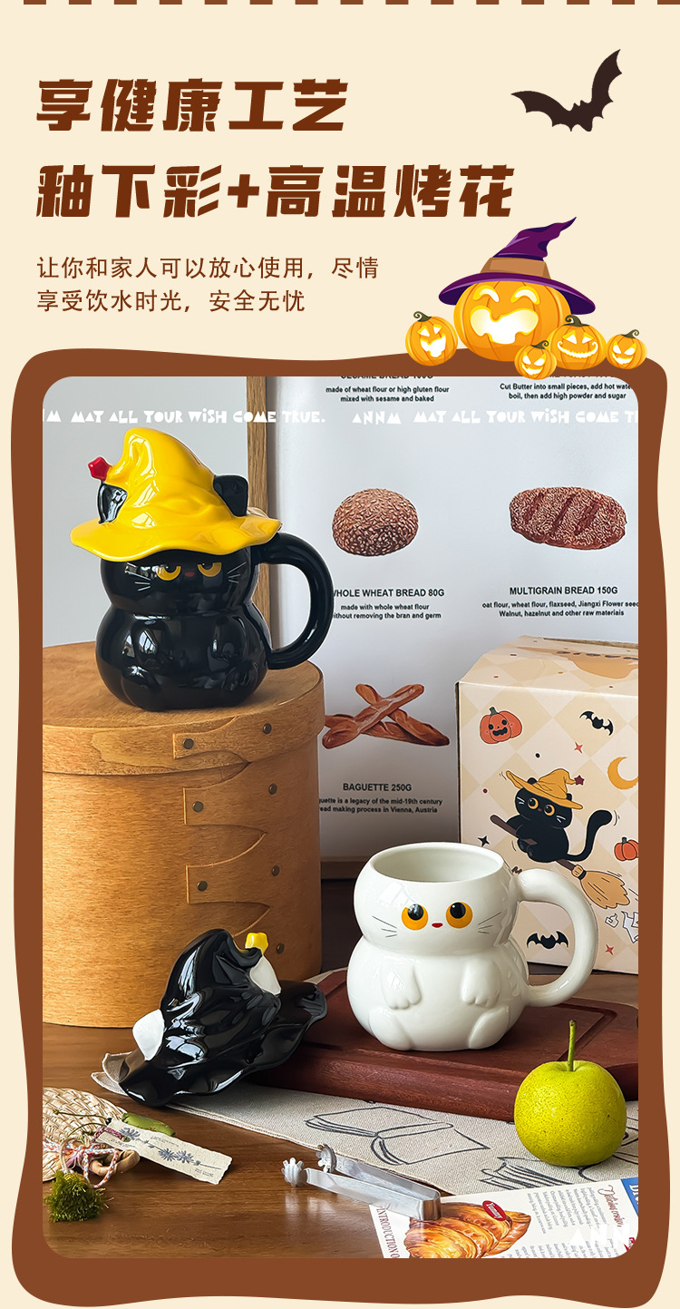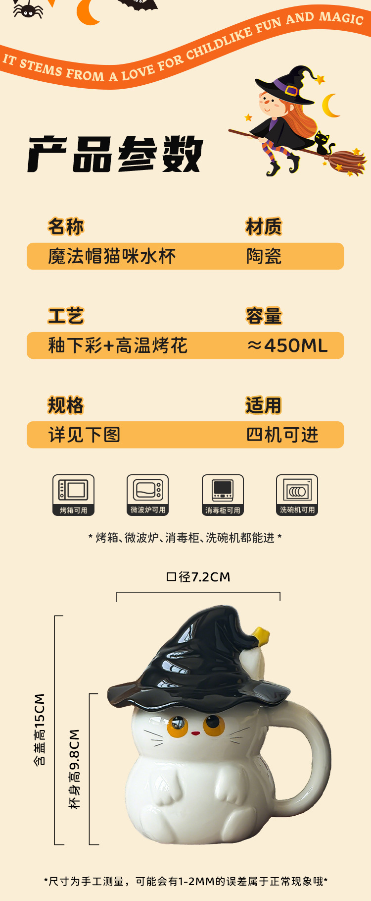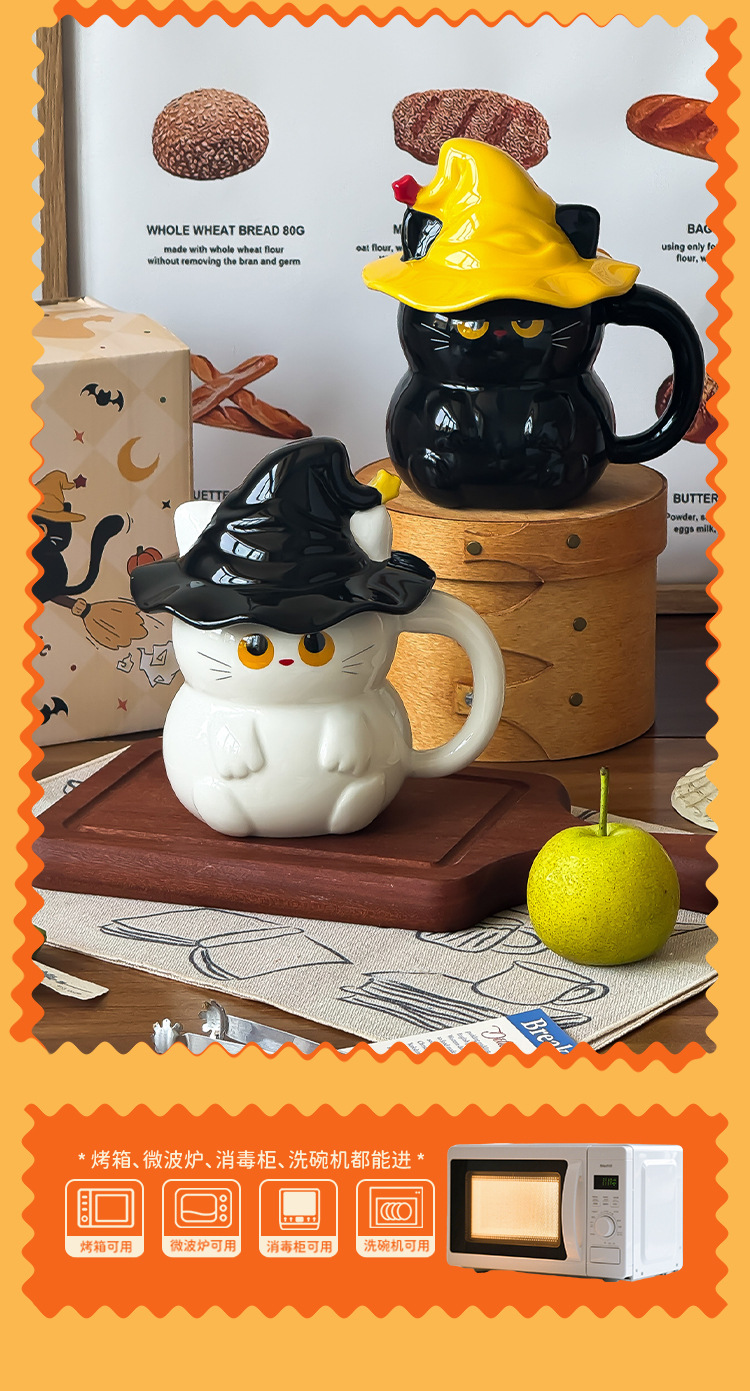 创意个性魔法帽猫咪马克杯万圣节幽灵陶瓷卡通杯可爱女情侣水杯